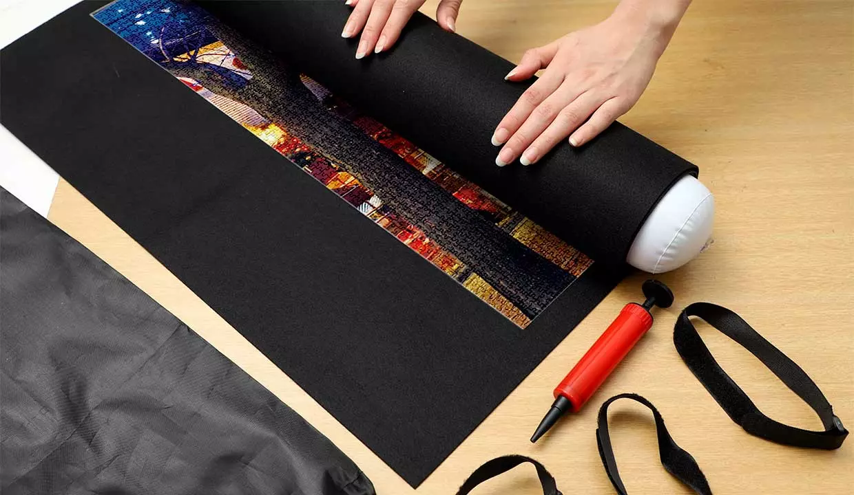 - Organizador cuenta con líneas de referencia para armar el rompecabezas y con indicador para diferentes tamaños.