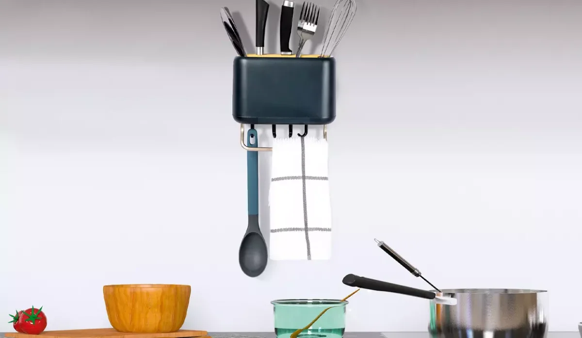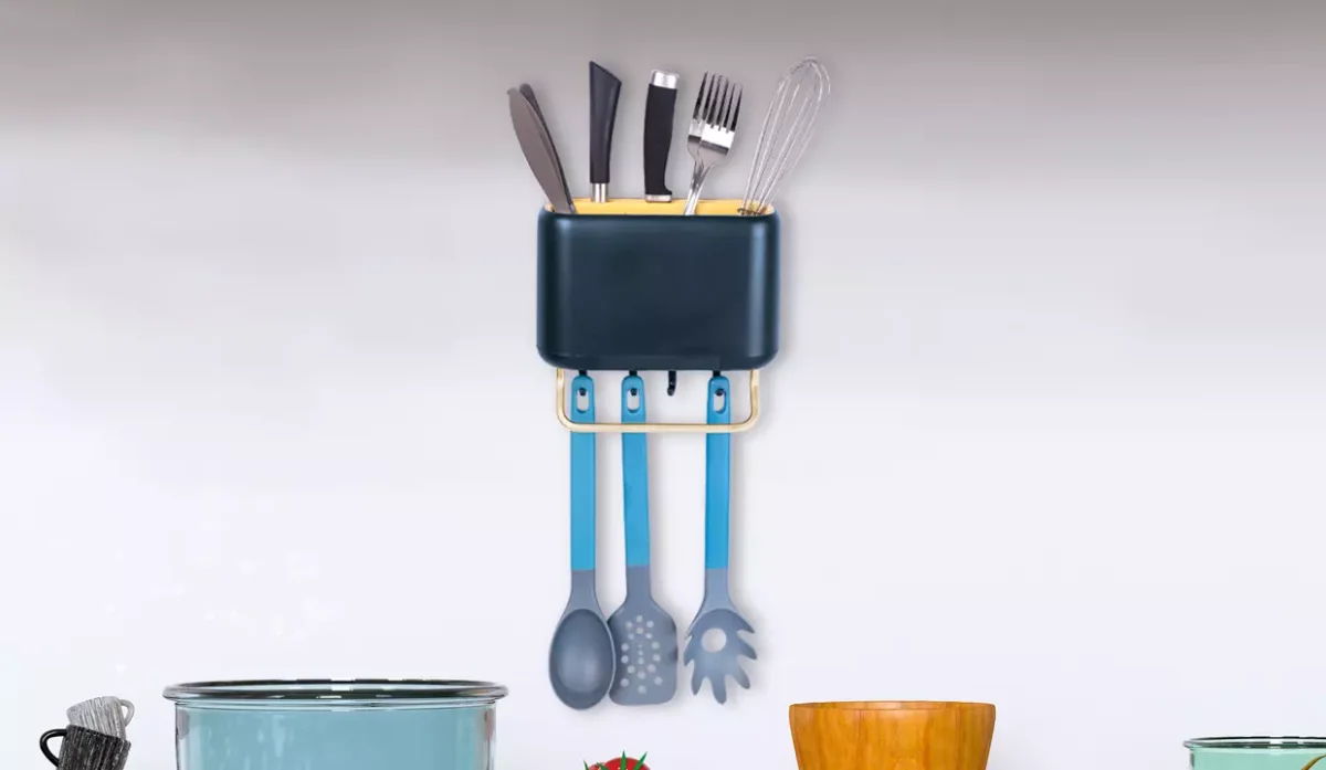 - Cuenta con cinco espacios para organizar utensilios y cuchillos.