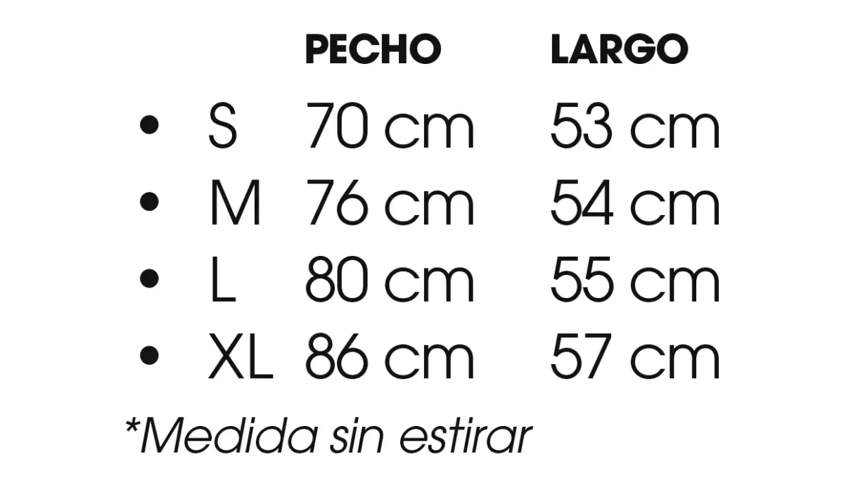 - Pecho 76 cm.