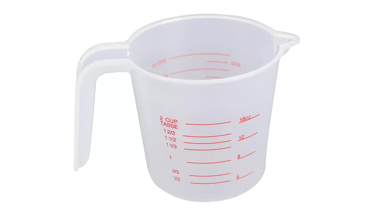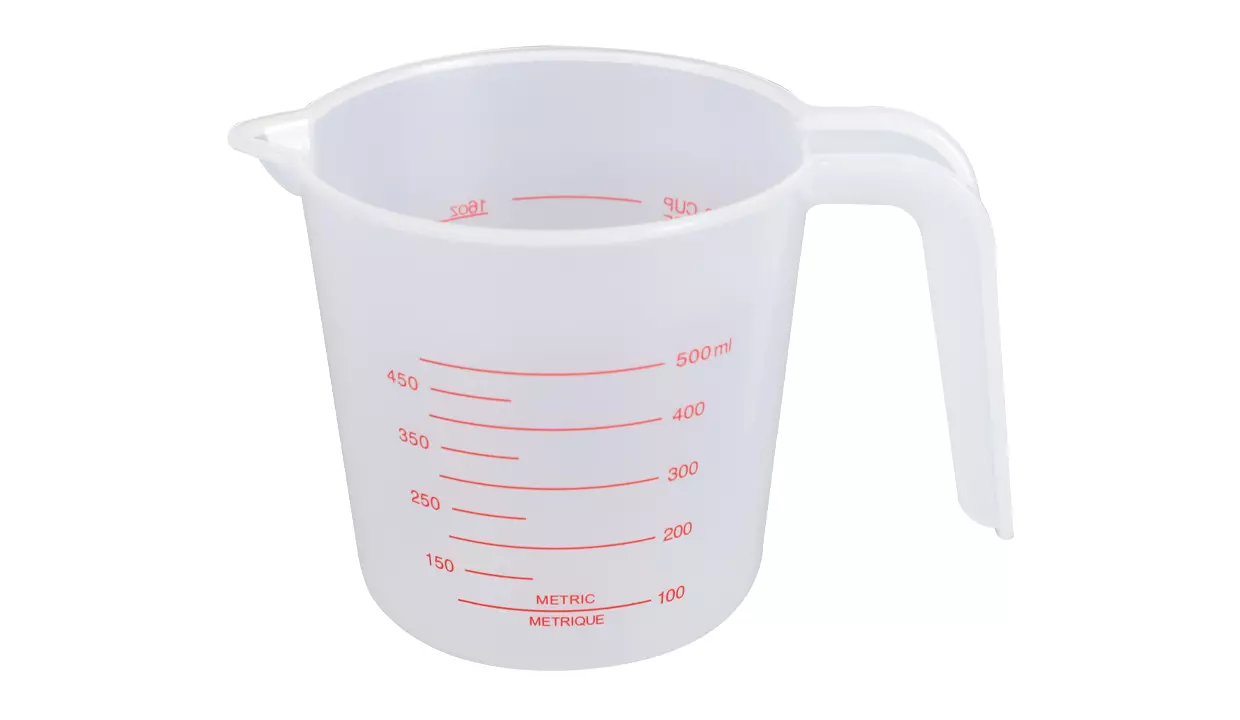 - 1 taza de 10 cm de alto x 10 cm de diámetro (500 ml).