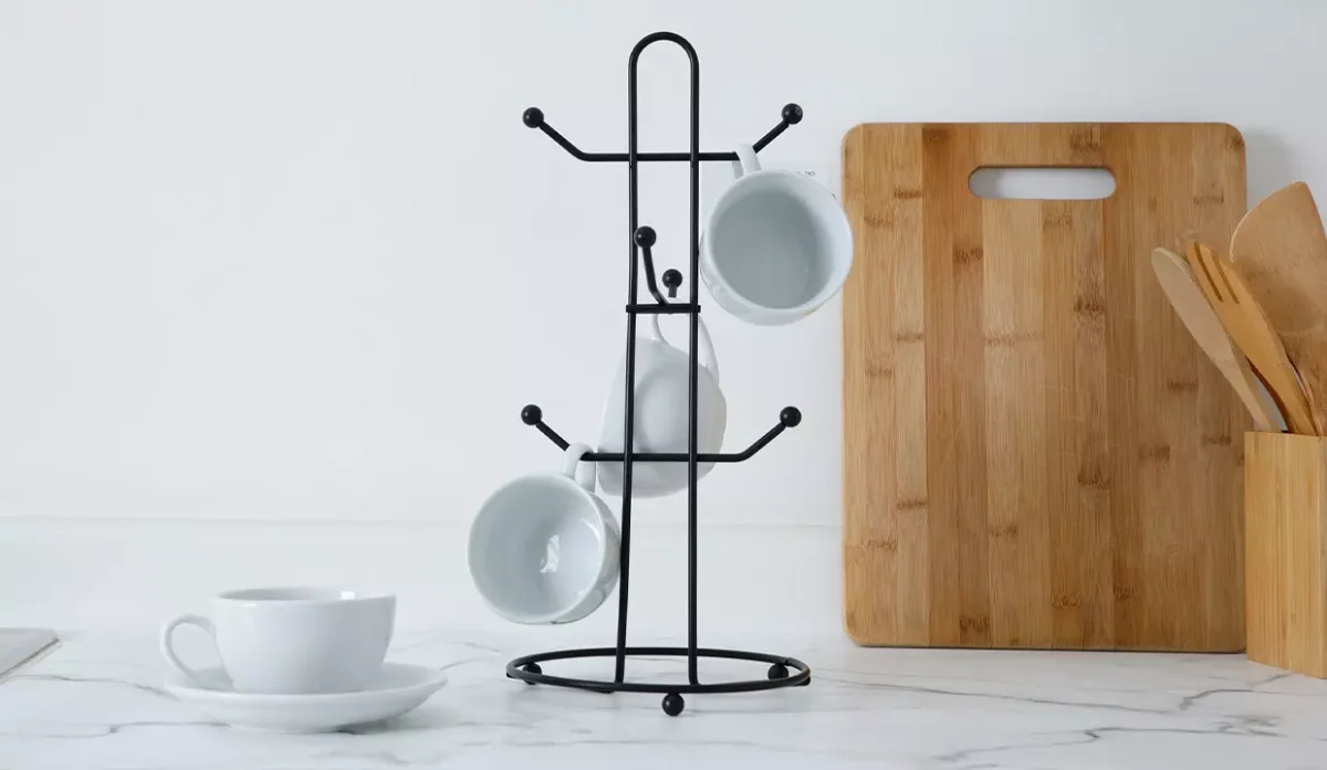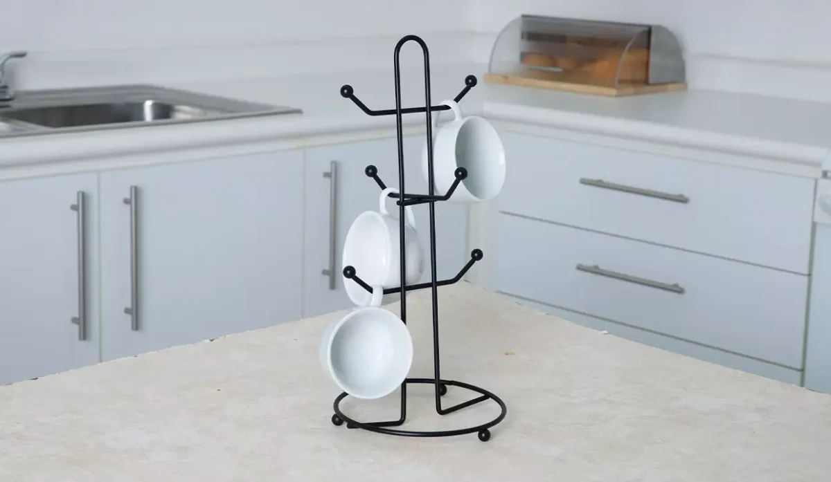 - Ideal para colgar hasta 6 tazas de forma segura y organizada.