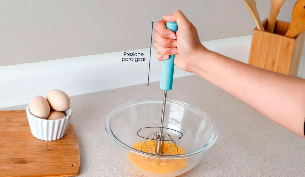 - Presione el mango hacia abajo para batir.
