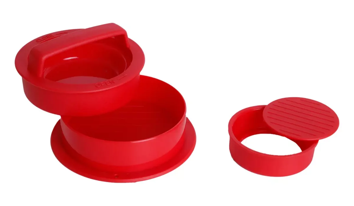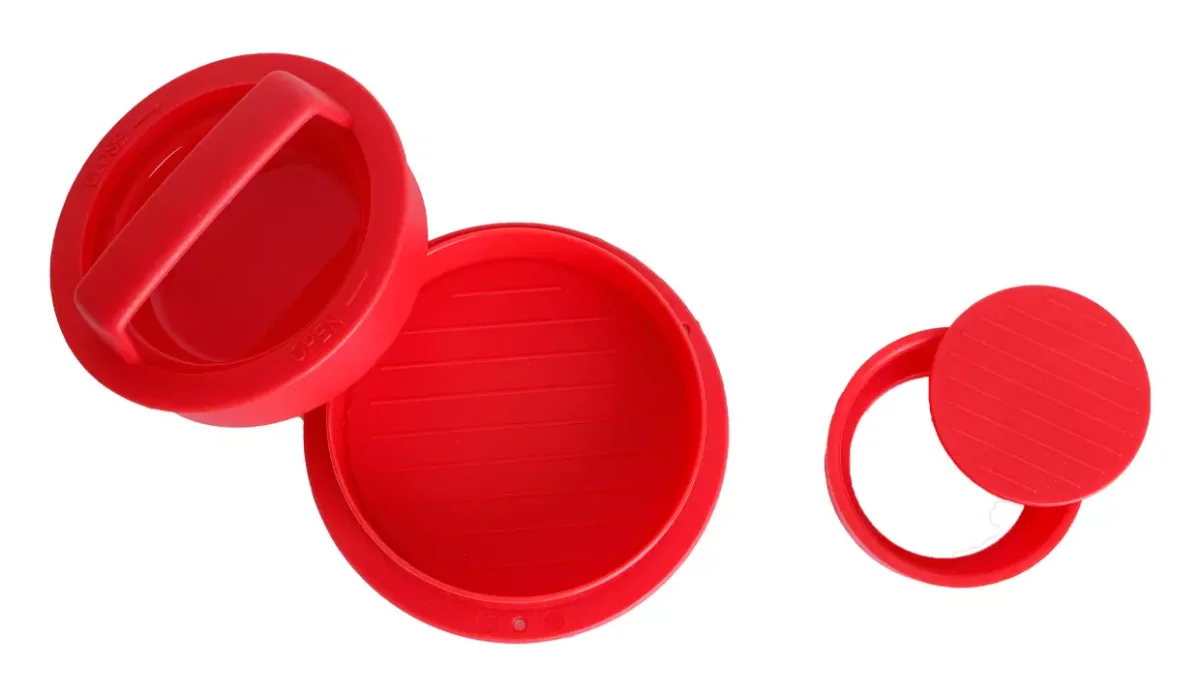 - Una base para tortas grandes, una prensa grande para sellar y alisar, una prensa para crear un orificio y rellenar las tortas, una base pequeña para mini tortas.
