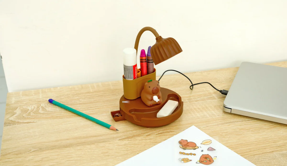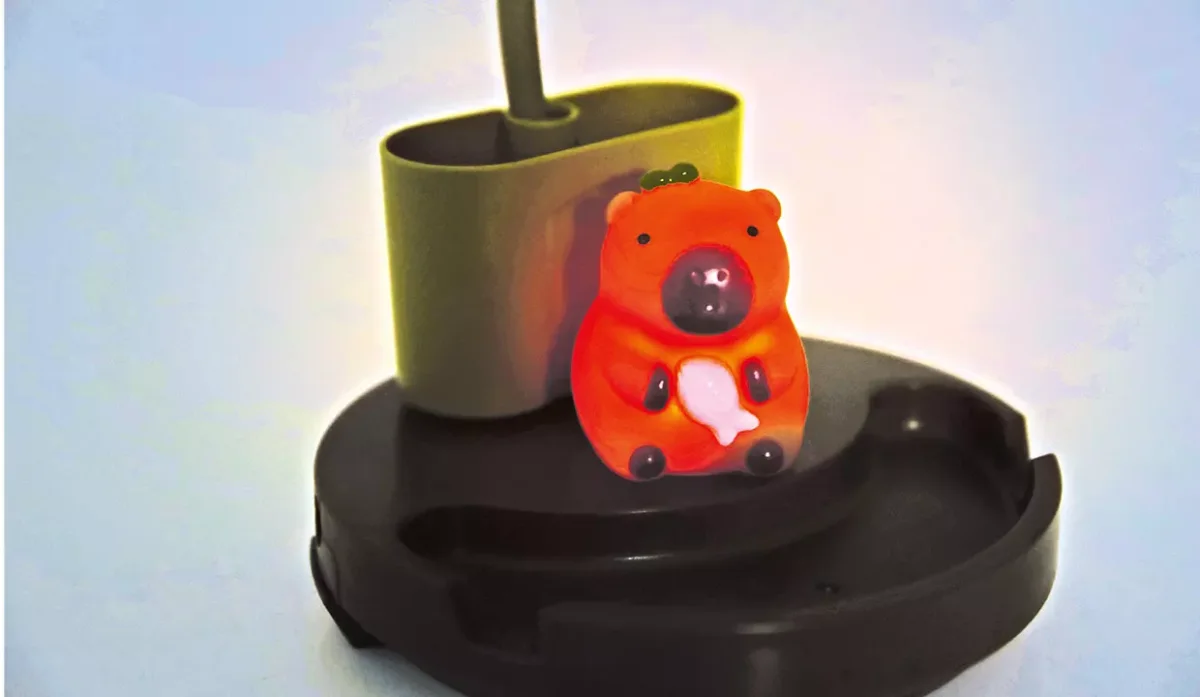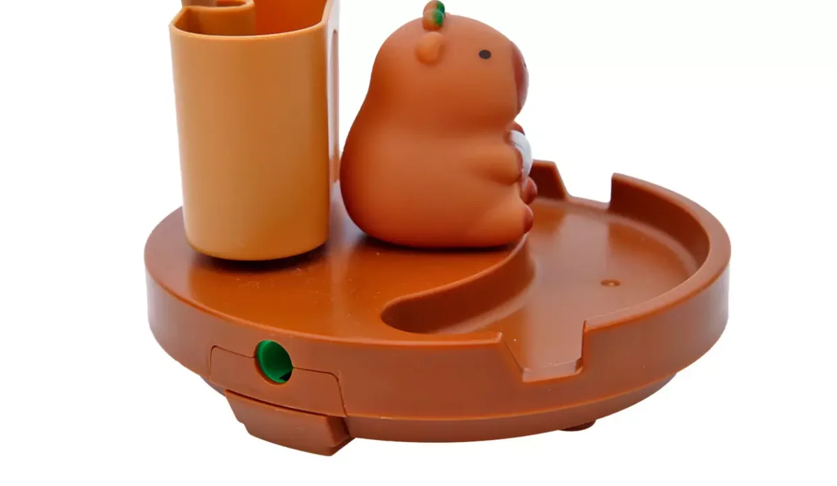 - Haga el botón hacia su izquierda para encender el capibara, a la derecha para encender la lámpara y en el centro para apagarla.