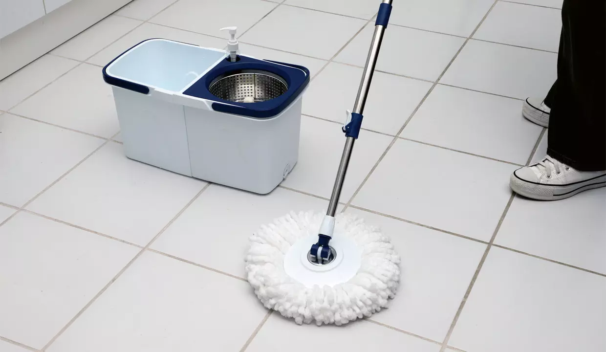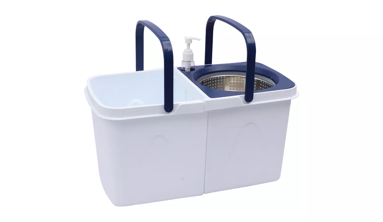 - Balde plástico con acero inoxidable, palo de plástico con acero inoxidable y mopa de microfibra.