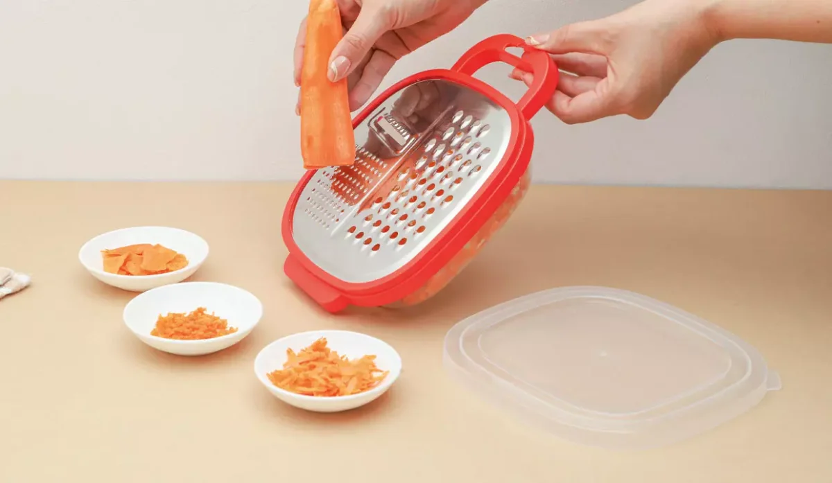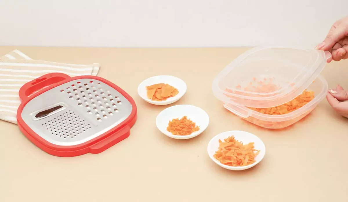 - El rallador se desprende del recipiente fácilmente.