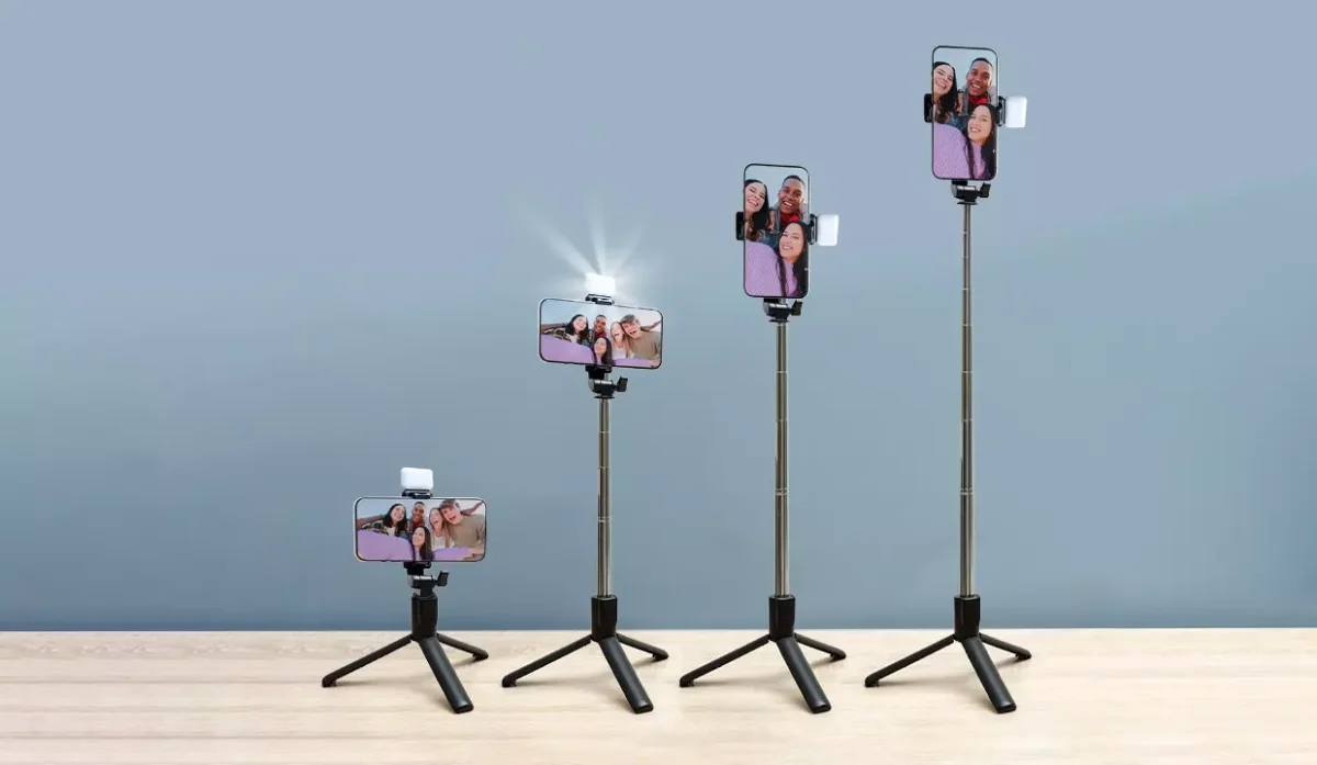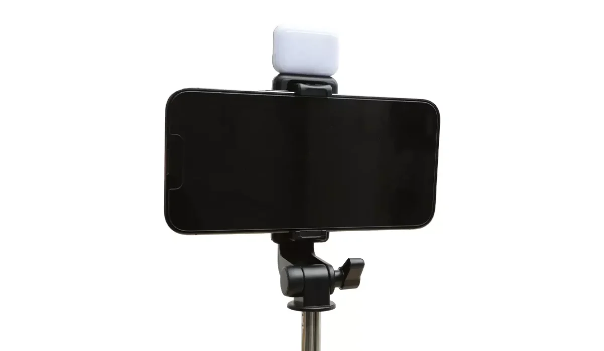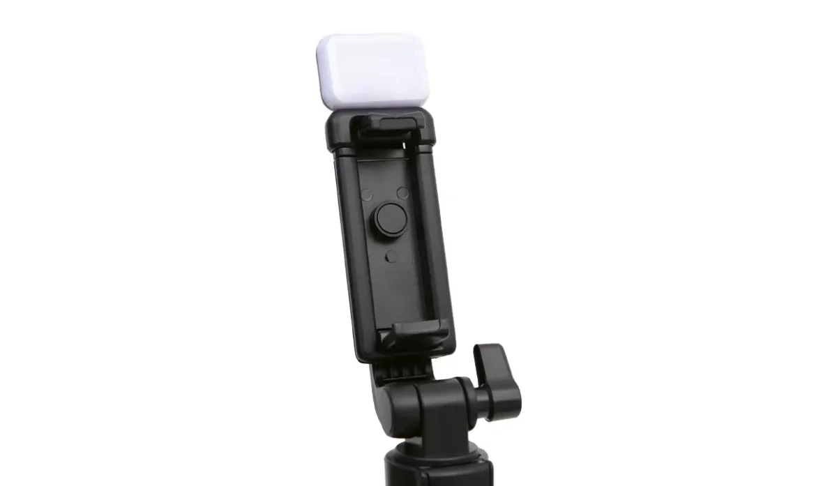 - trípode: para celulares de 6,5 cm hasta 9 cm de ancho, brazo de 20 cm hasta 94 cm de alto.