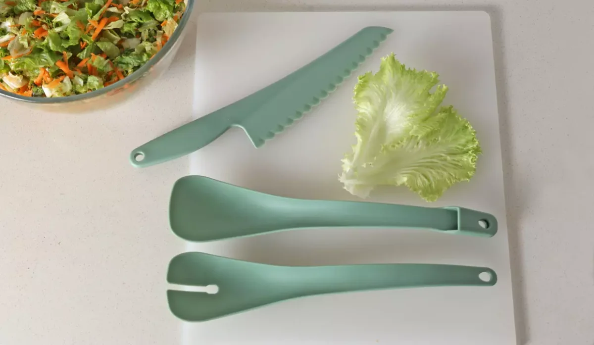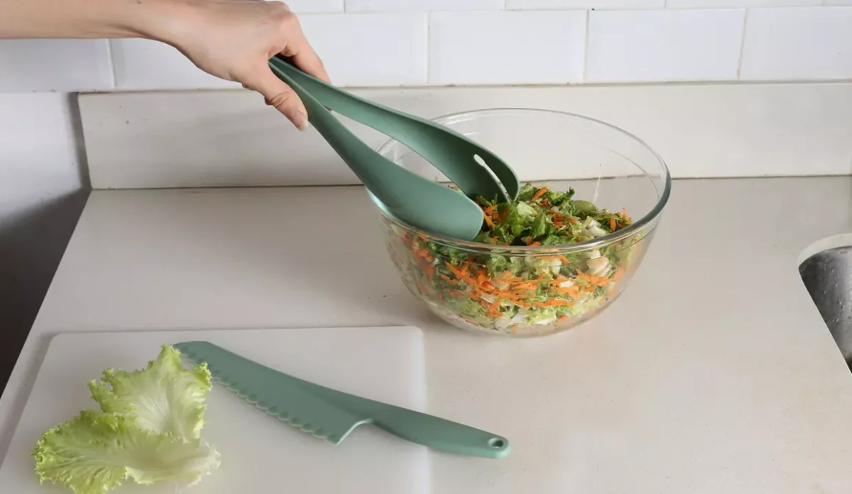 - La cuchara y el tenedor se acoplan para formar una pinza.