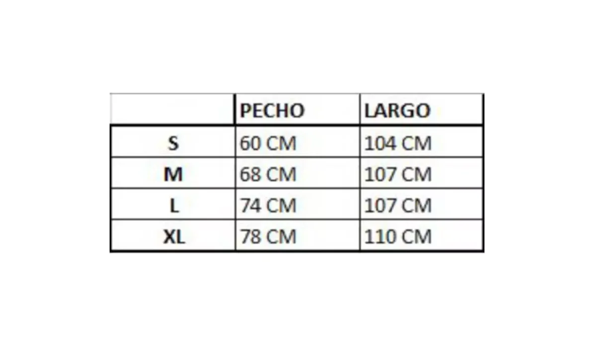 - Cintura: 78 cm (sin estirar).
