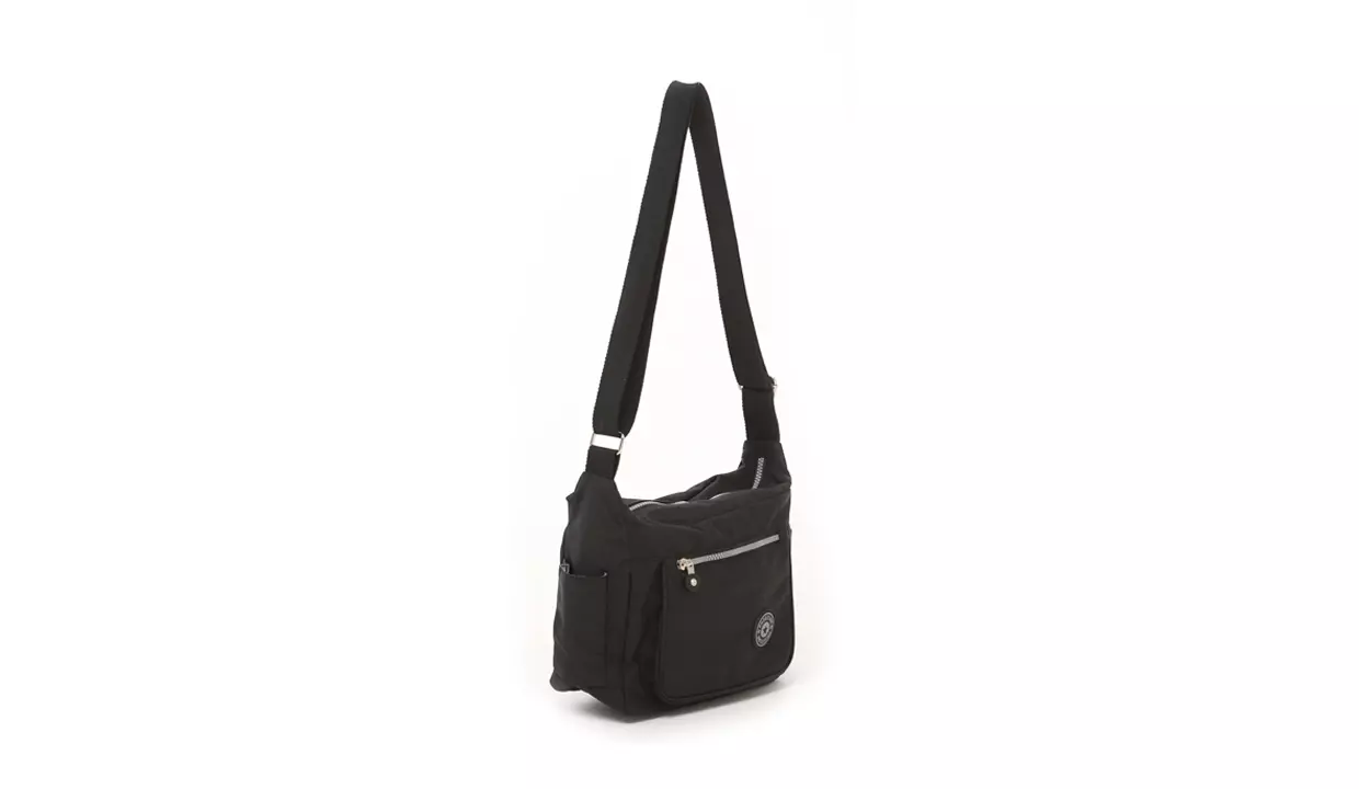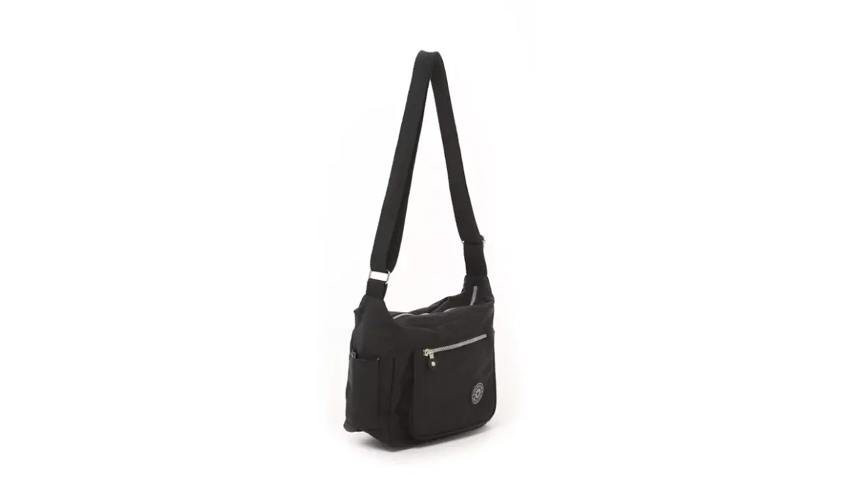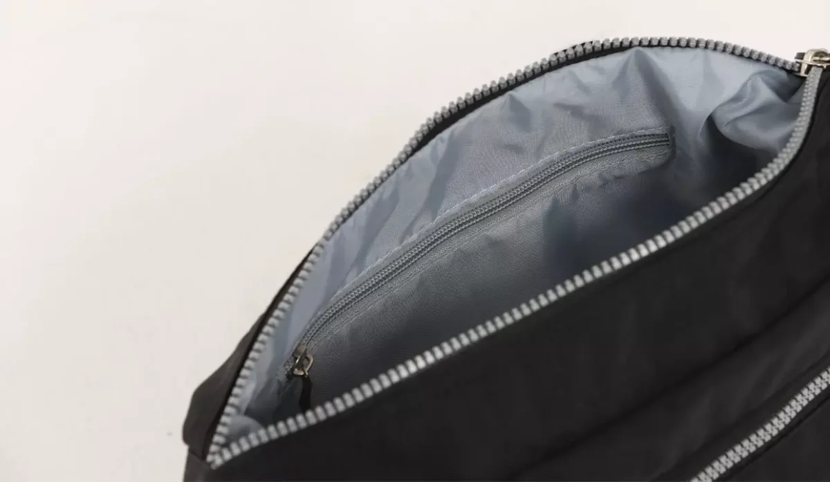 - Cierre principal con zipper. Cuenta con un compartimento interno, dos externos con zipper y dos bolsillos laterales.