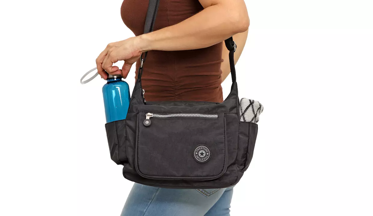 - 10 cm de ancho x 32 cm de largo x 25 cm de alto (correa: 35 cm hasta 72 cm de largo).