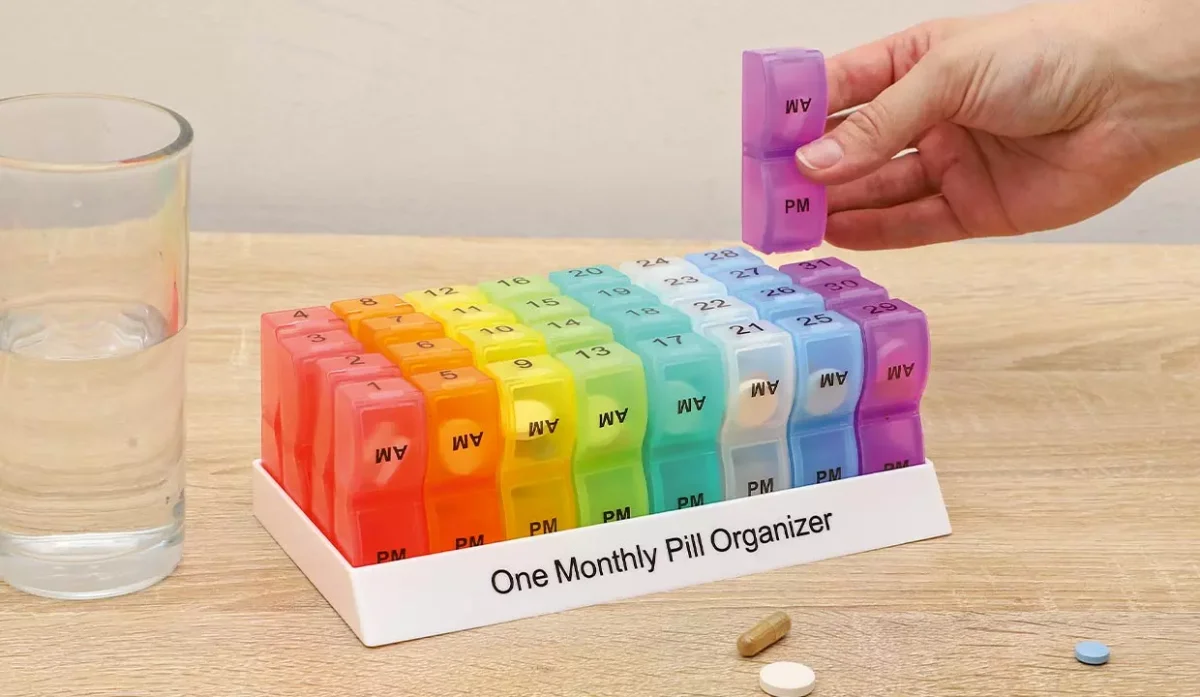 - Cada compartimento tiene dos espacios para organizar las pastillas de la mañana y de la noche.