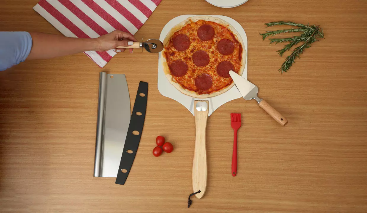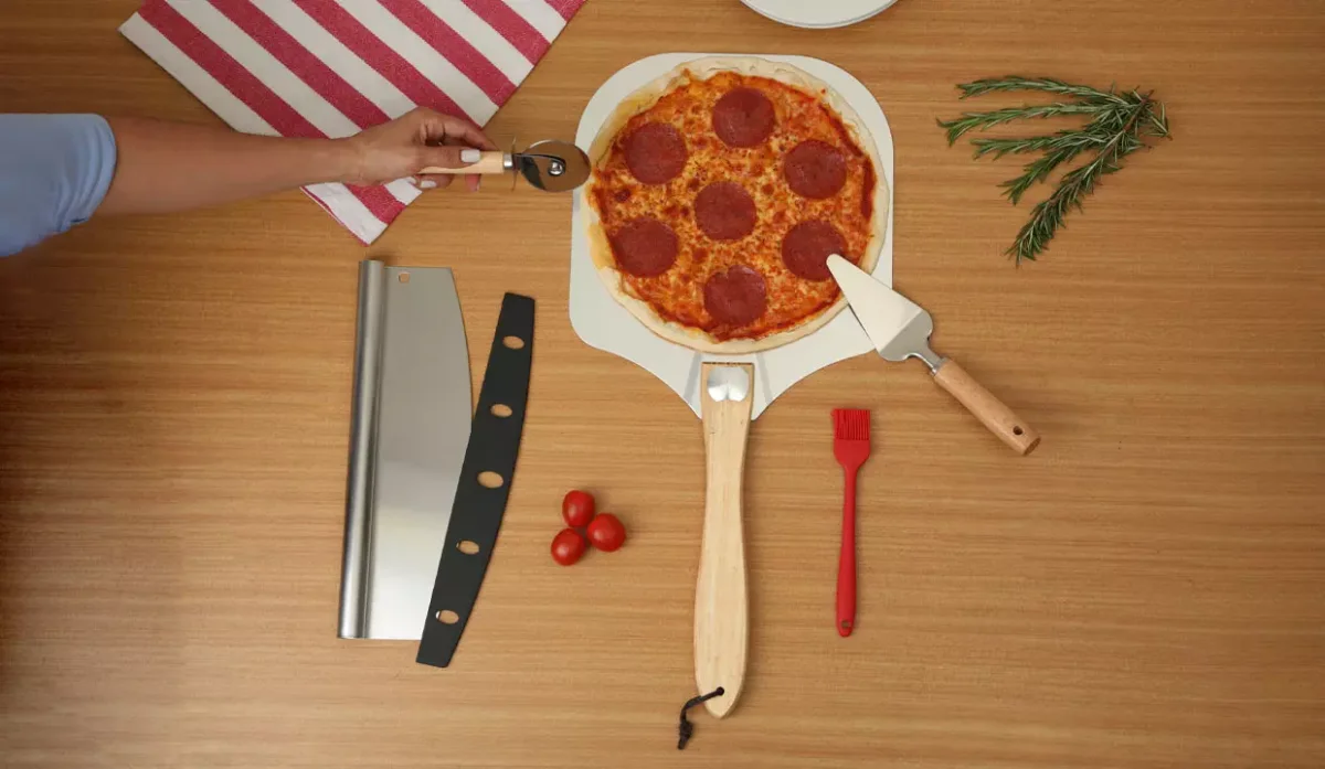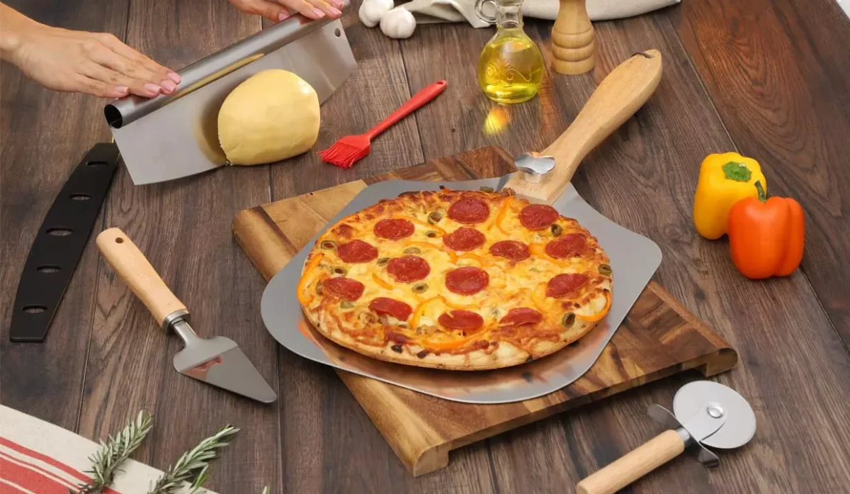 - 1 cortador de pizza con protector de 11 cm de ancho x 35 cm de largo.
