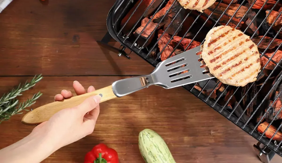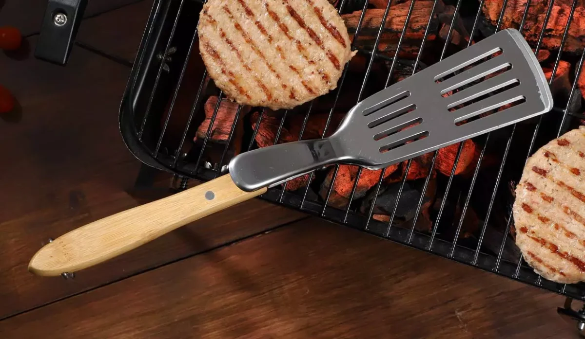 - Acero inoxidable y mango de madera.
