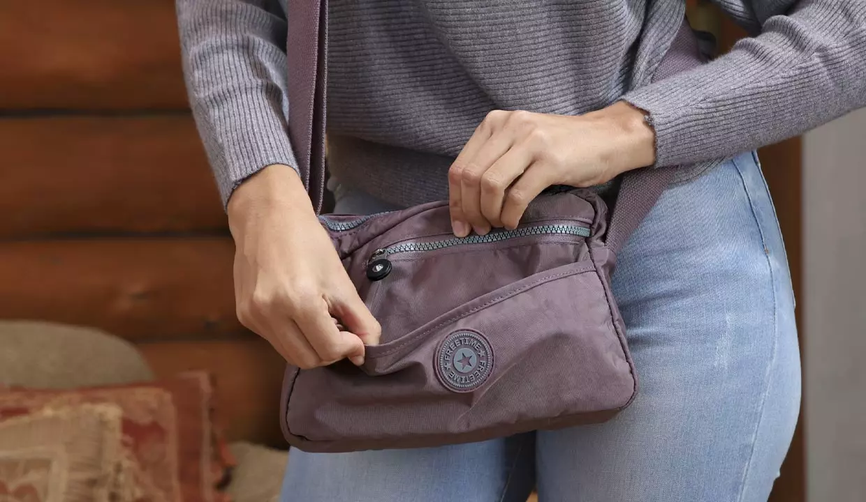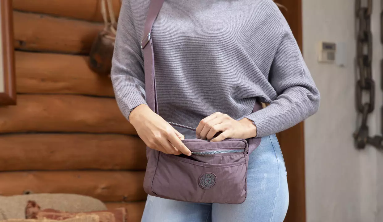 - 6 cm de ancho x 25 cm de largo x 17 cm de alto (correa: 29 cm hasta 67 cm de largo).