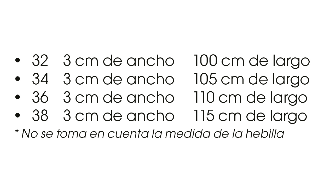 - 3 cm de ancho x 105 cm de largo.