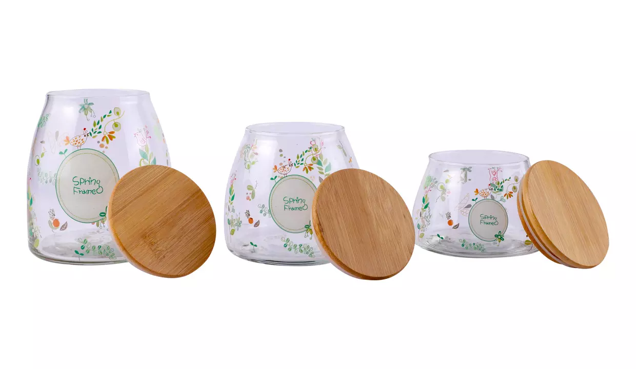 ¡Hermosos! Compré 2 sets porque estaban en promoción y estoy encantada. La tapa es a presión, se ajusta perfectamente y la decoración es hermosa. El vidrio es poco delgado, pero para su tipo de uso está perfecto.
