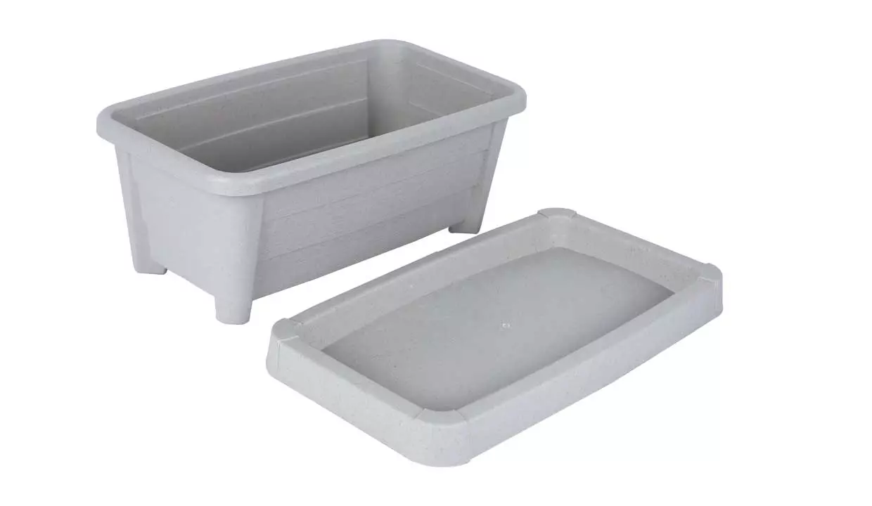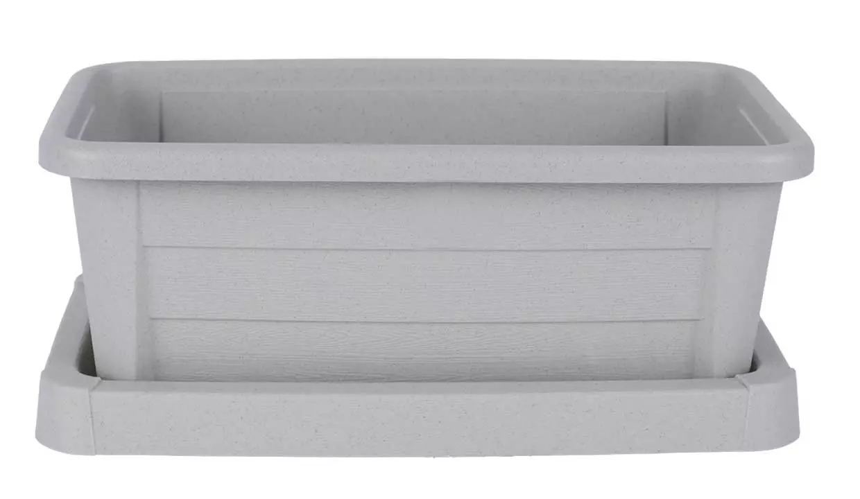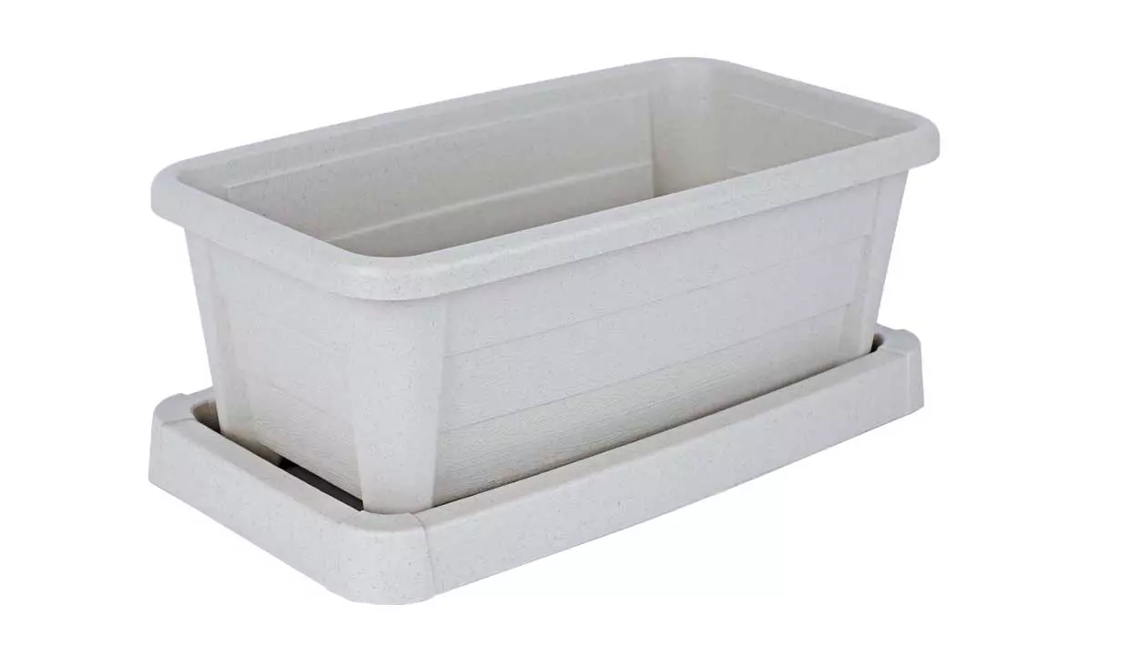 - 1 maceta de 19 cm de ancho x 34 cm de largo x 13 cm de alto.