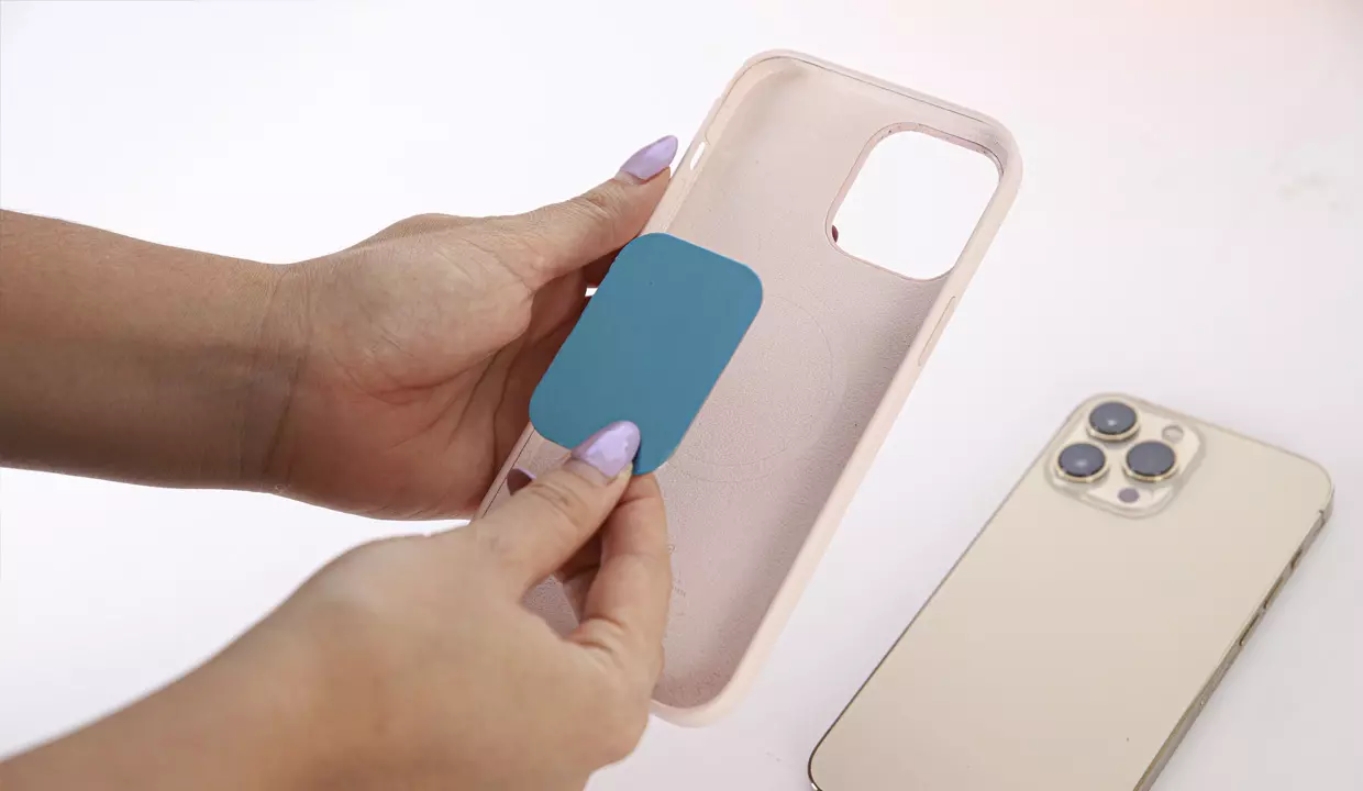 - 2 formas de uso: 1- Puede pegar la placa redonda al celular. 2- O colocar la placa rectangular, dentro del estuche.