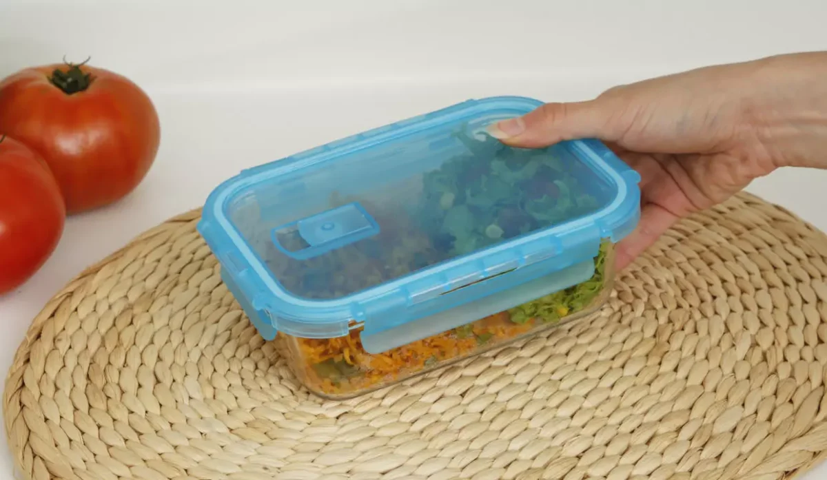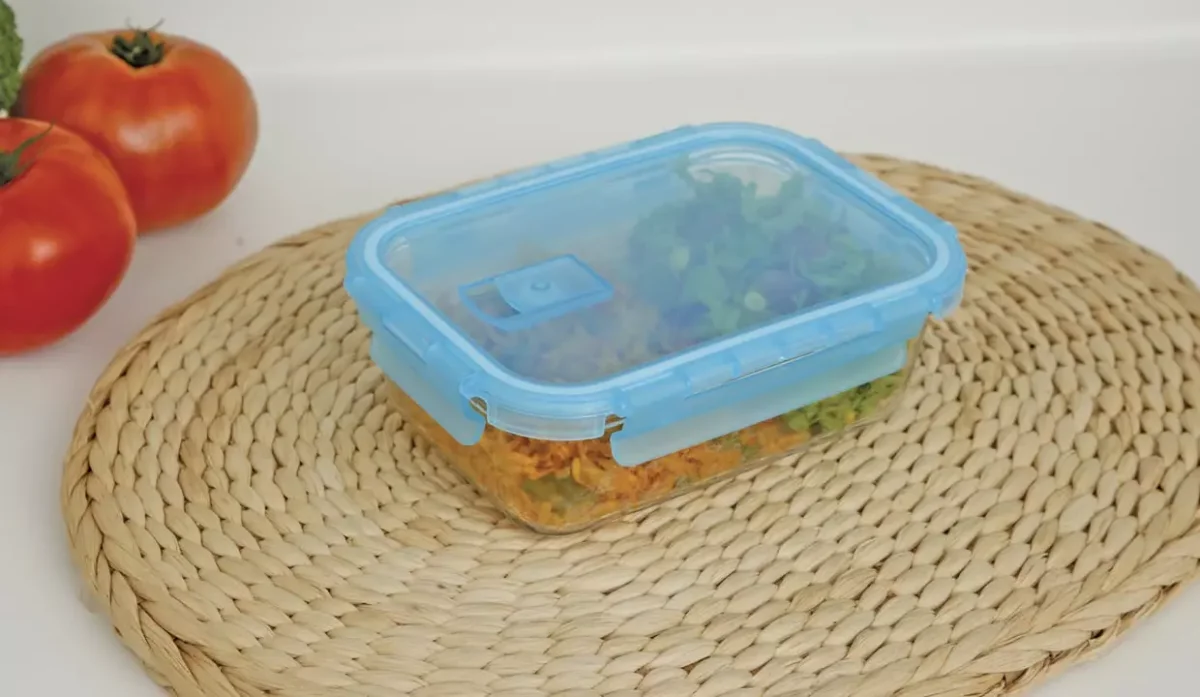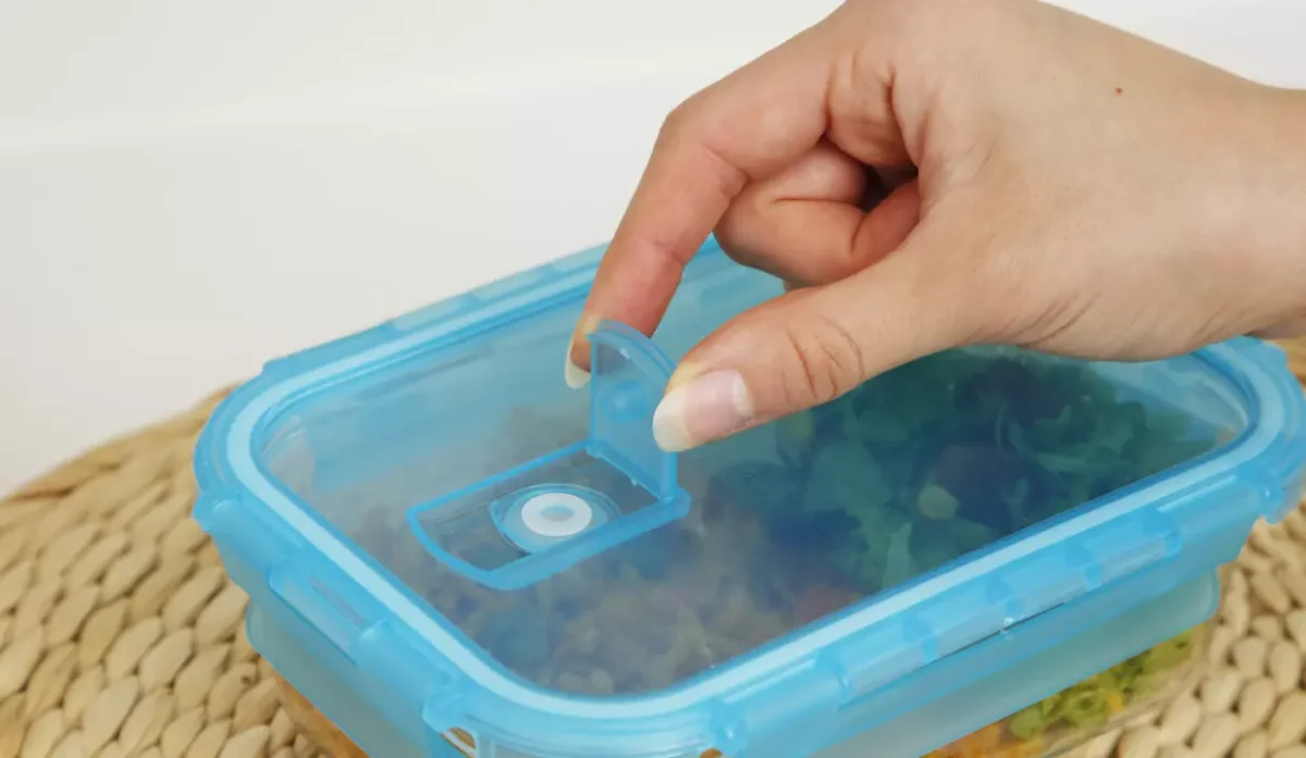 - Tapa con salida de vapor y cierres con clip.