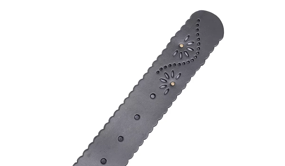 Cuero y hebilla de metal.