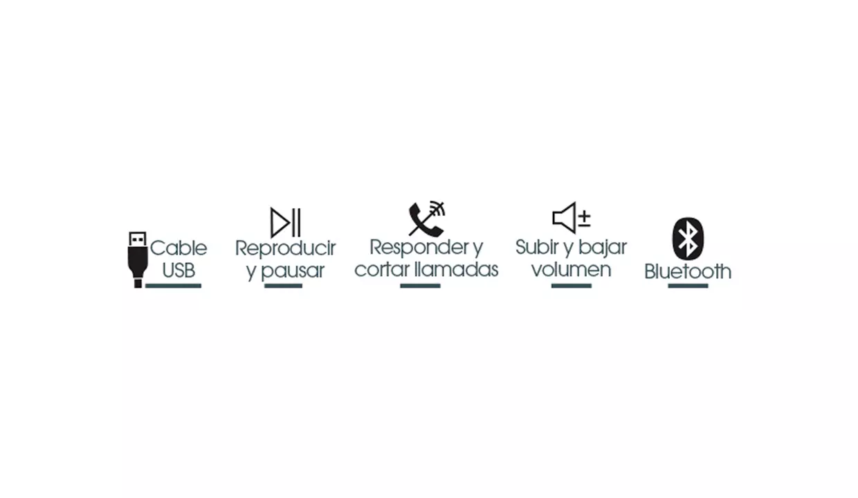 - Botones de ajuste de volumen, pausa, cambio de reproducción, devuelve la canción, contesta o finaliza llamadas.
