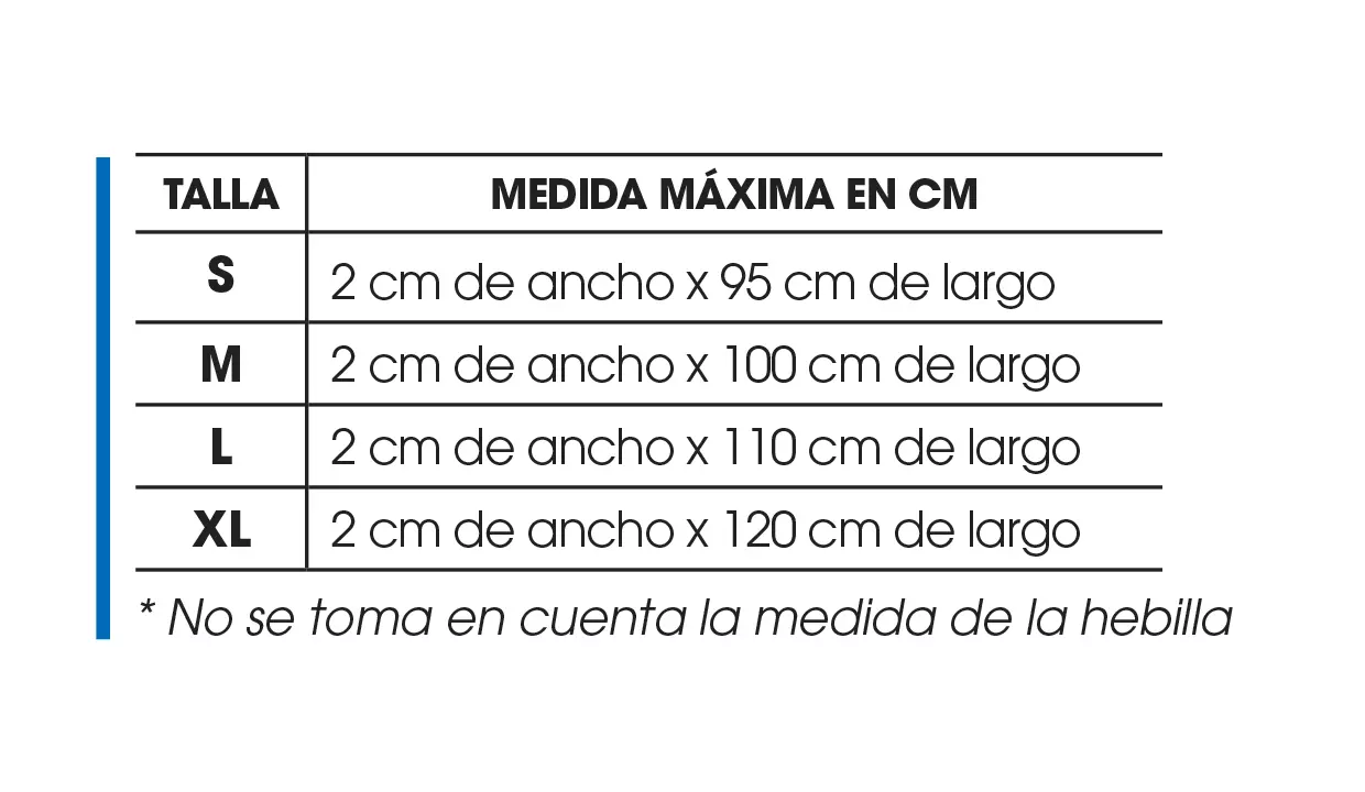 2 cm de ancho x 95 cm de largo.