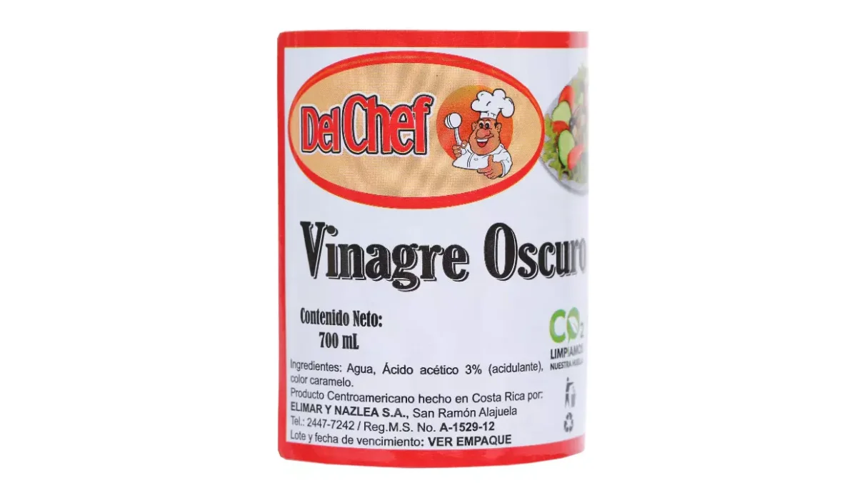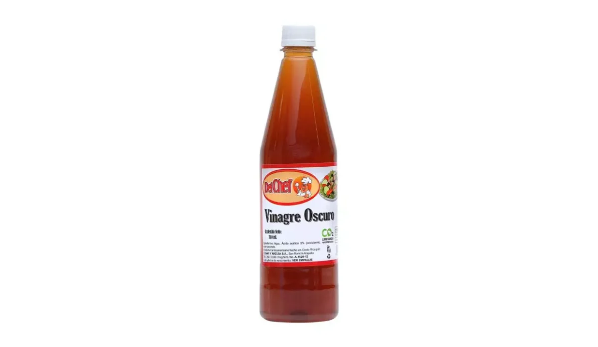 Agua, ácido acético, sal, azúcar y color caramelo.