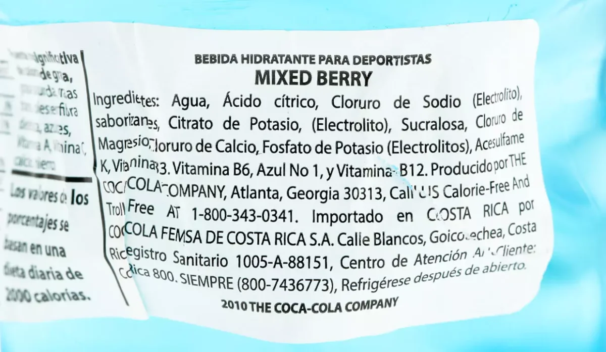 - Agua, ácido cítrico, cloruro de sodio y saborizantes.