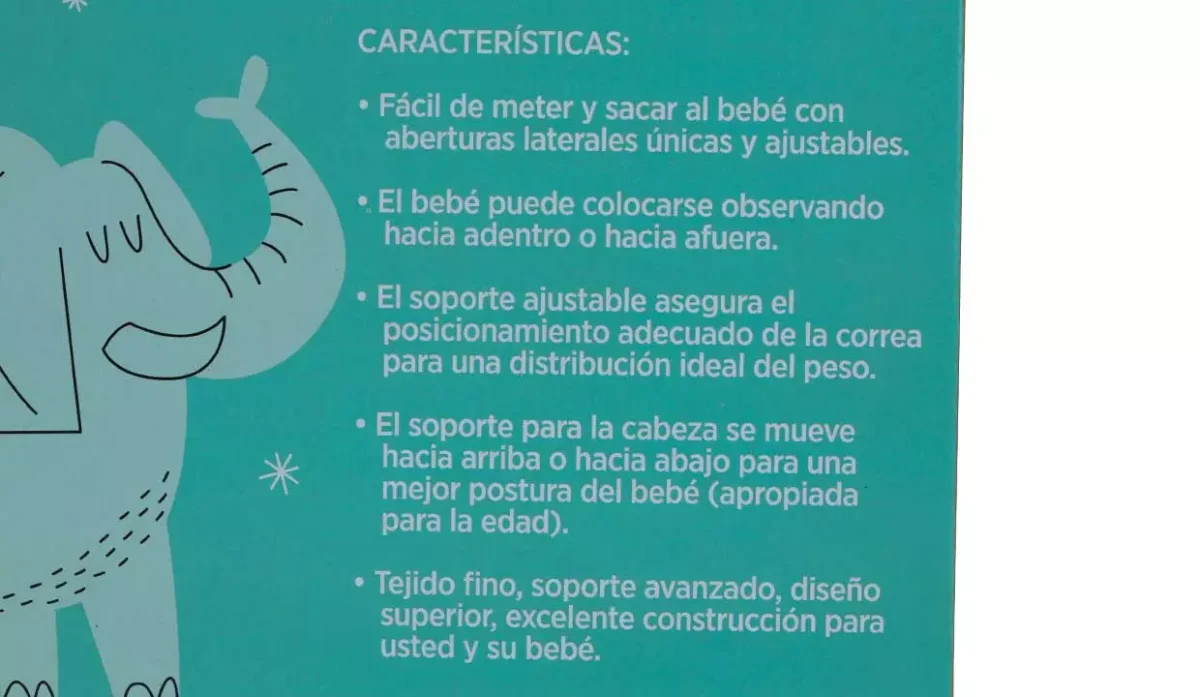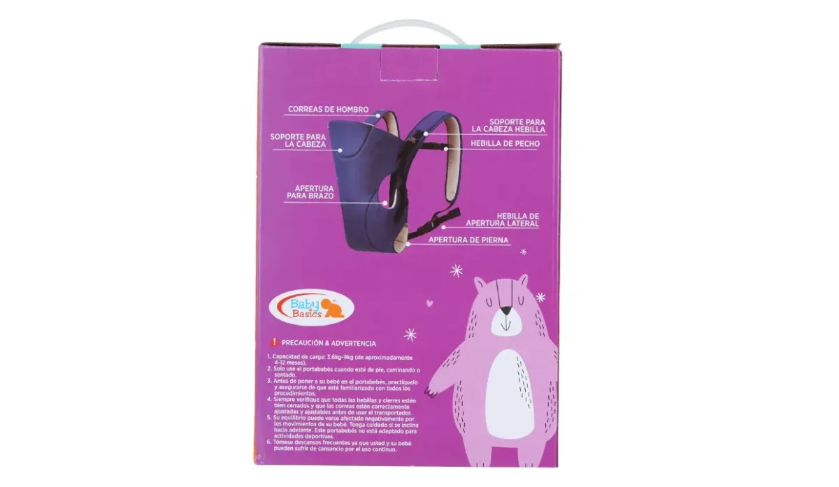 - Fácil de meter y sacar al bebé, con aberturas laterales únicas y ajustables.
