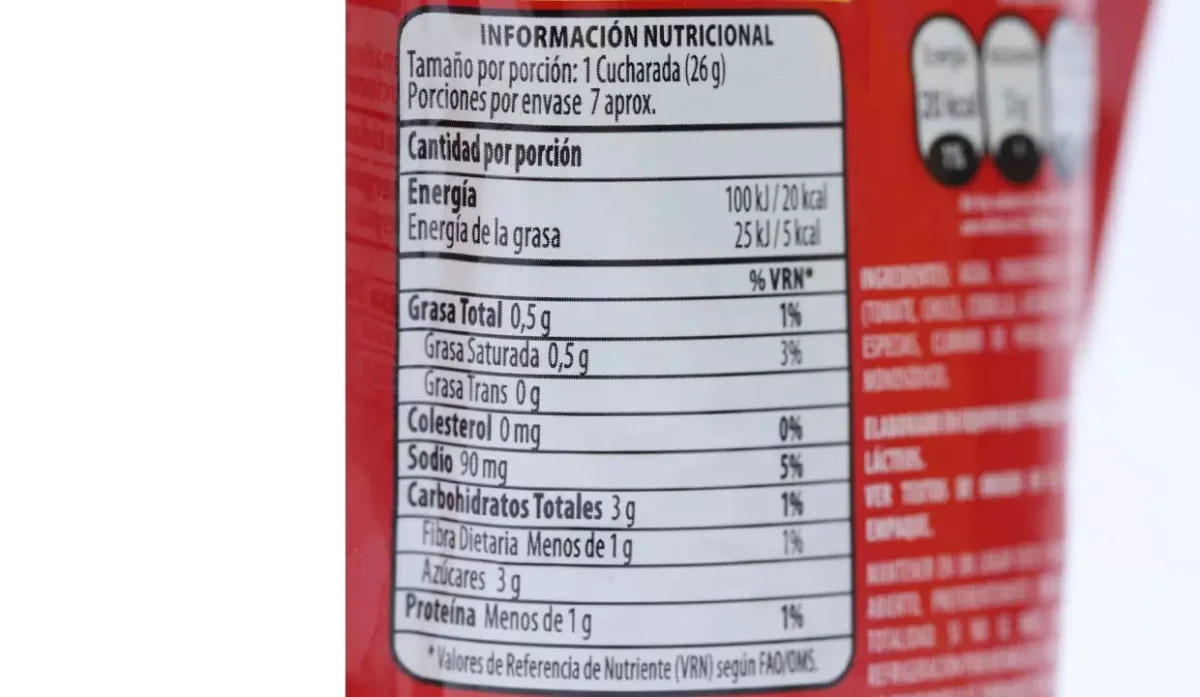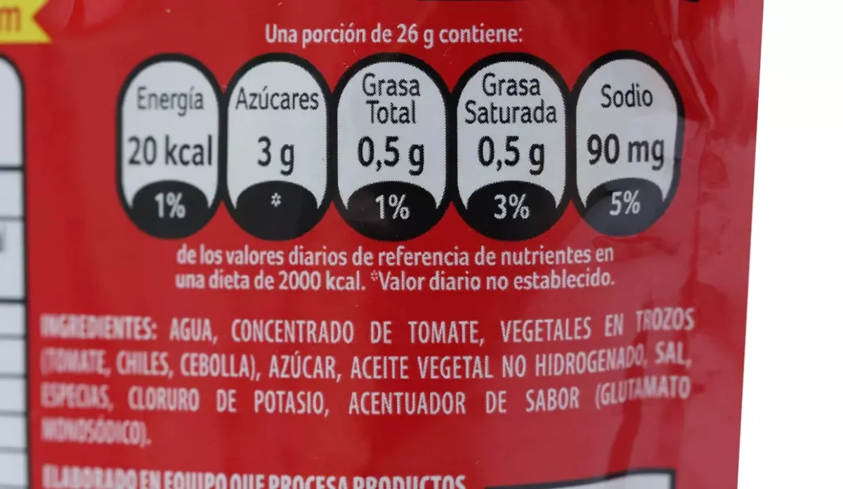 - Agua, concentrado de tomate, vegetales en trozos (tomates, chiles y cebollas), azúcar, oleína de palma, jalapeño, ajo, sal y especias.