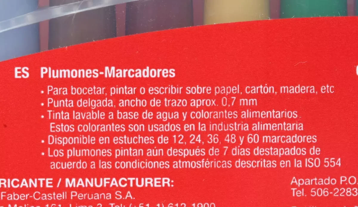 - La tinta es lavable a base de agua y colorantes alimentarios.