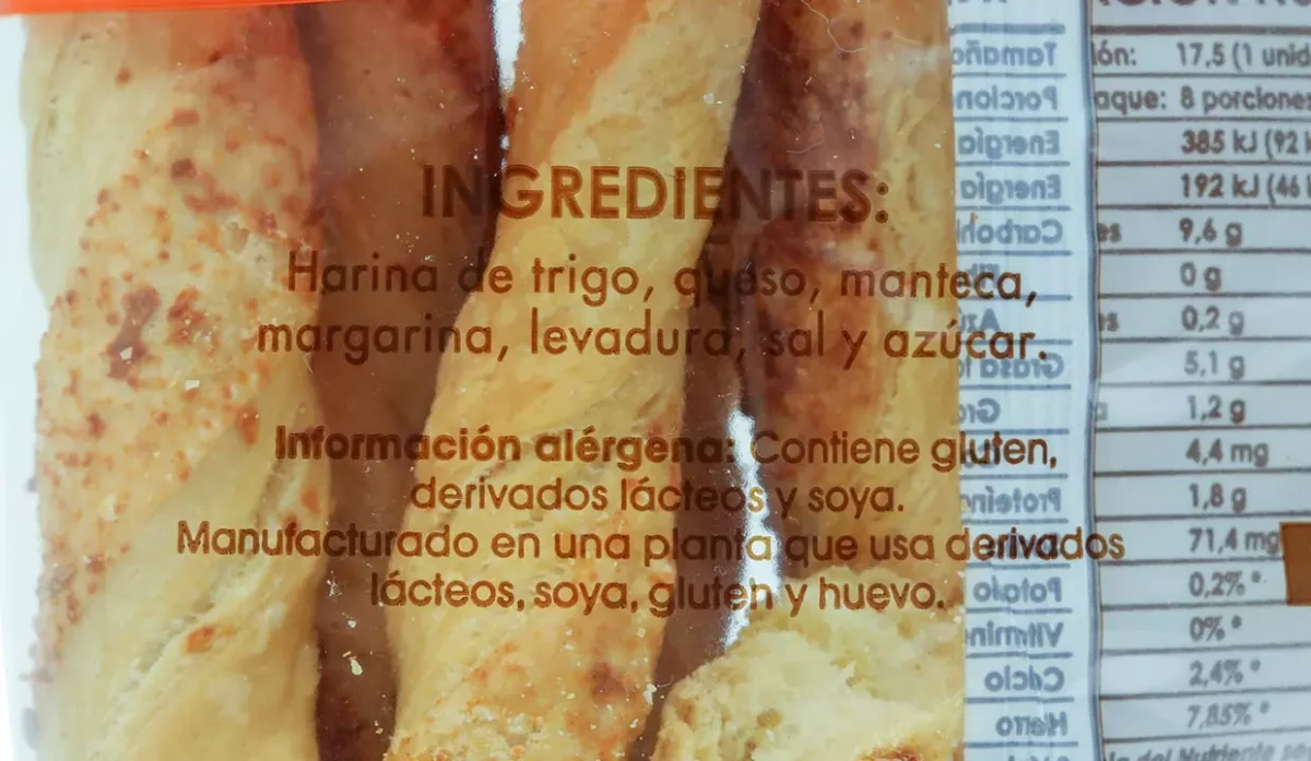 - Harina de trigo, queso, margarina, levadura, sal y azúcar.