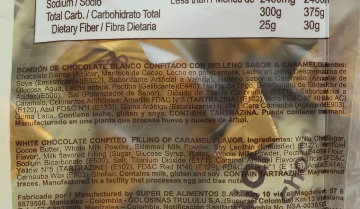- Contiene tartrazina, leche, gluten y soya.