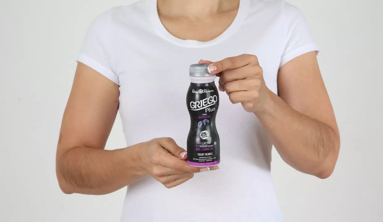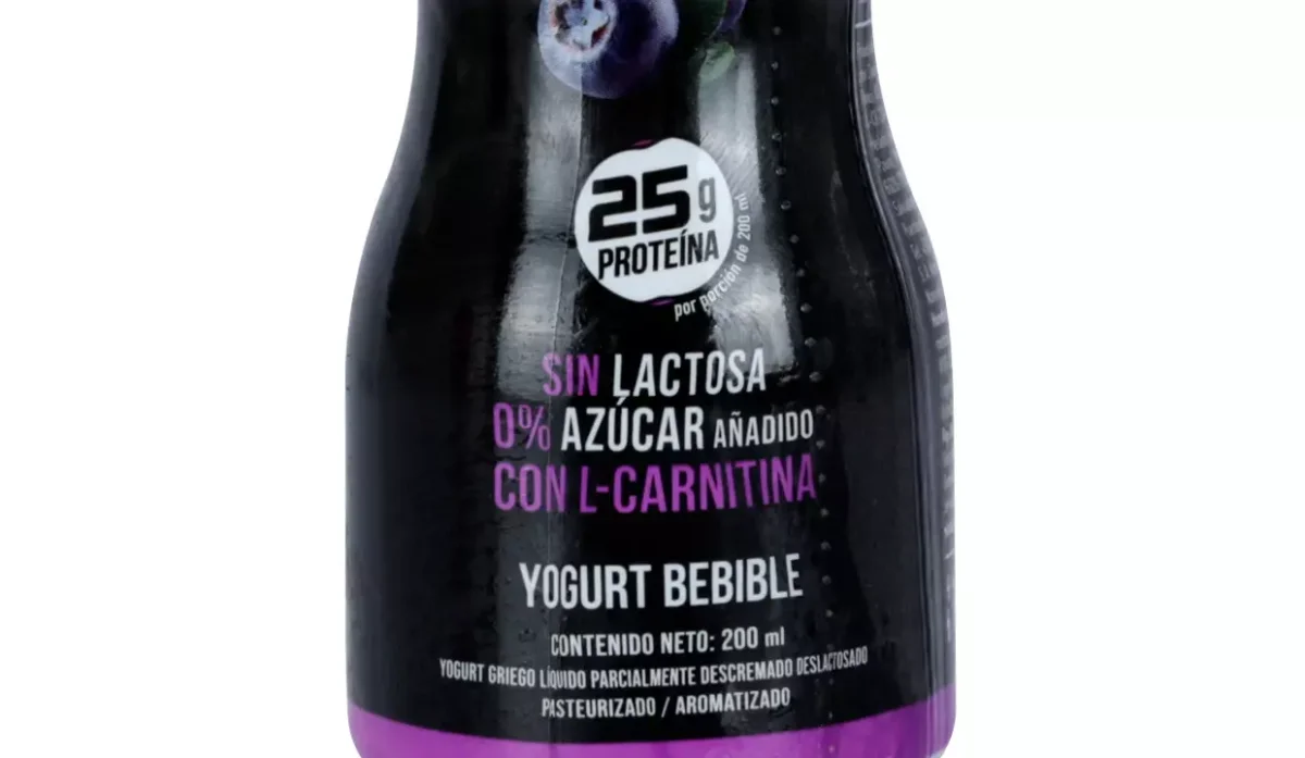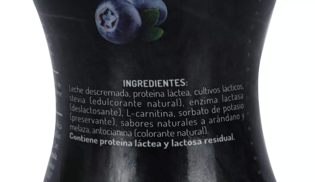 - Leche descremada, proteína láctea, cultivos lácticos, stevia, carnitina y sabor natural a arándano.