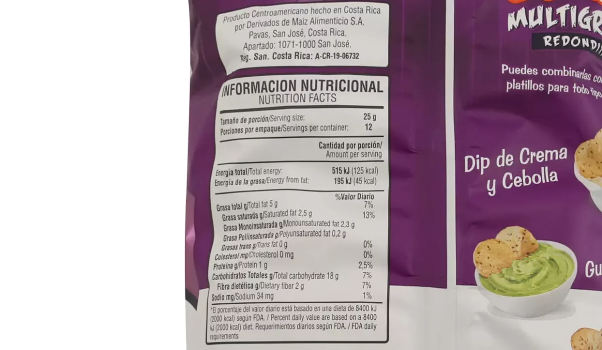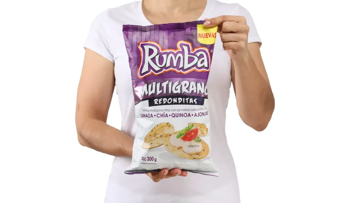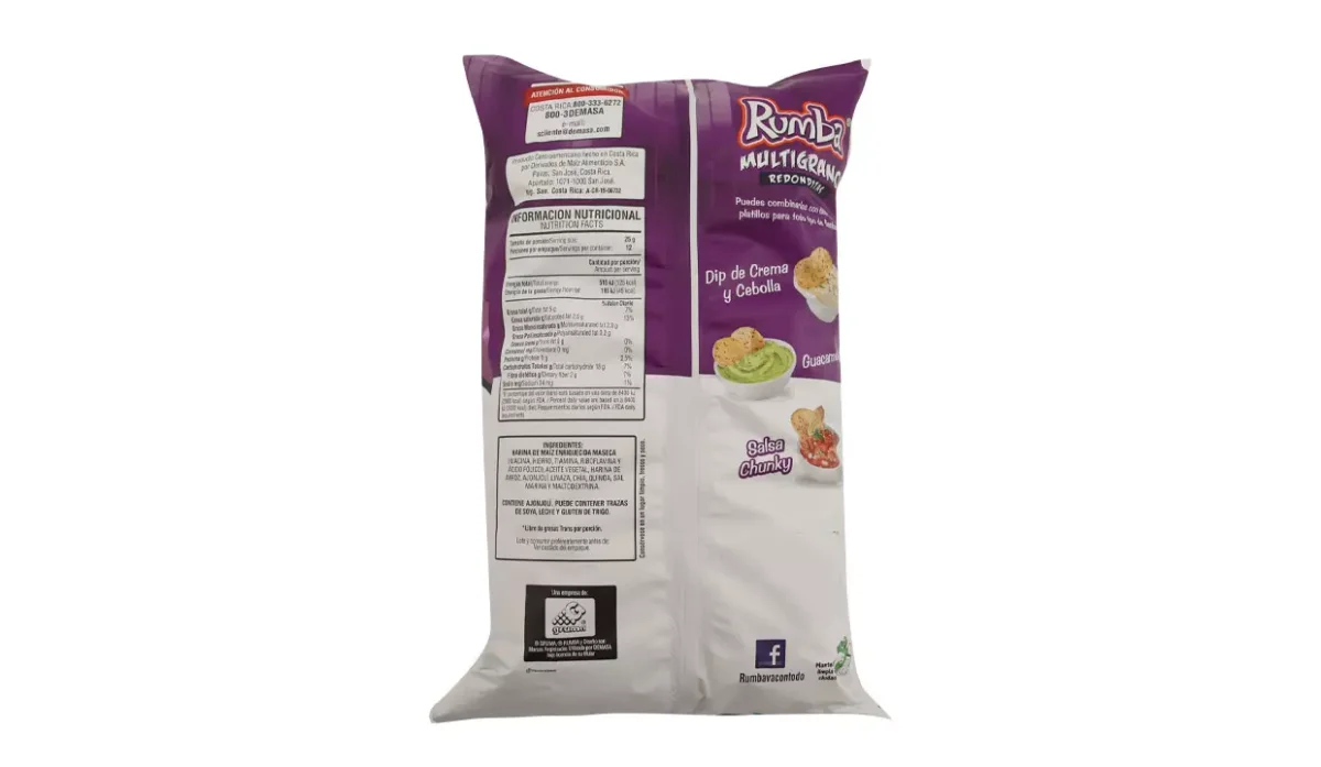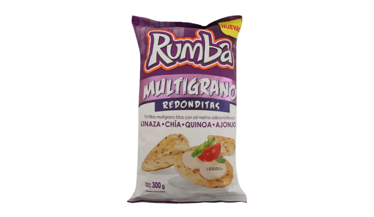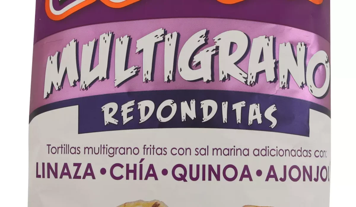 - Tortillas multigrano fritas con sal marina adicionadas con: linaza, chía, quinoa y ajonjolí.