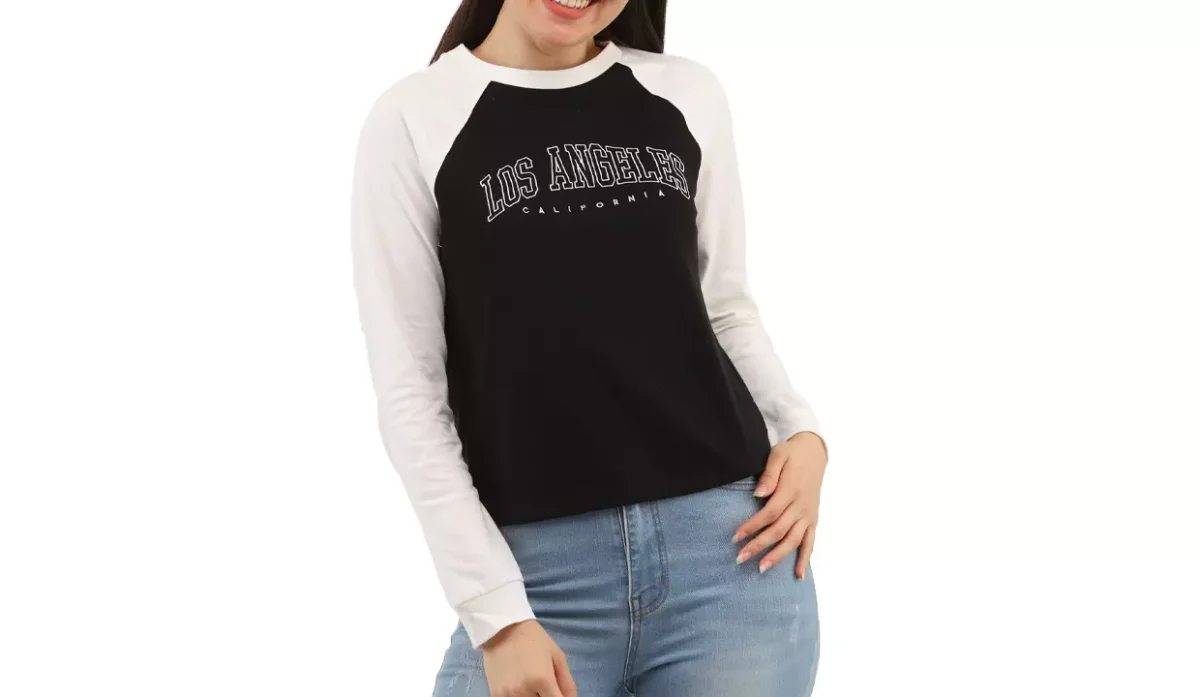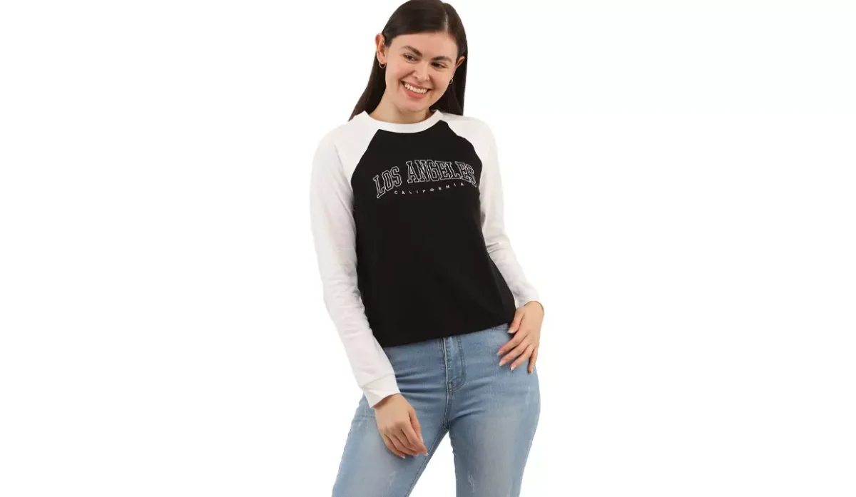 CAMISETA MANGA LARGA ACTIVE USA NEGRO C/BLANCO PARA MUJER TS