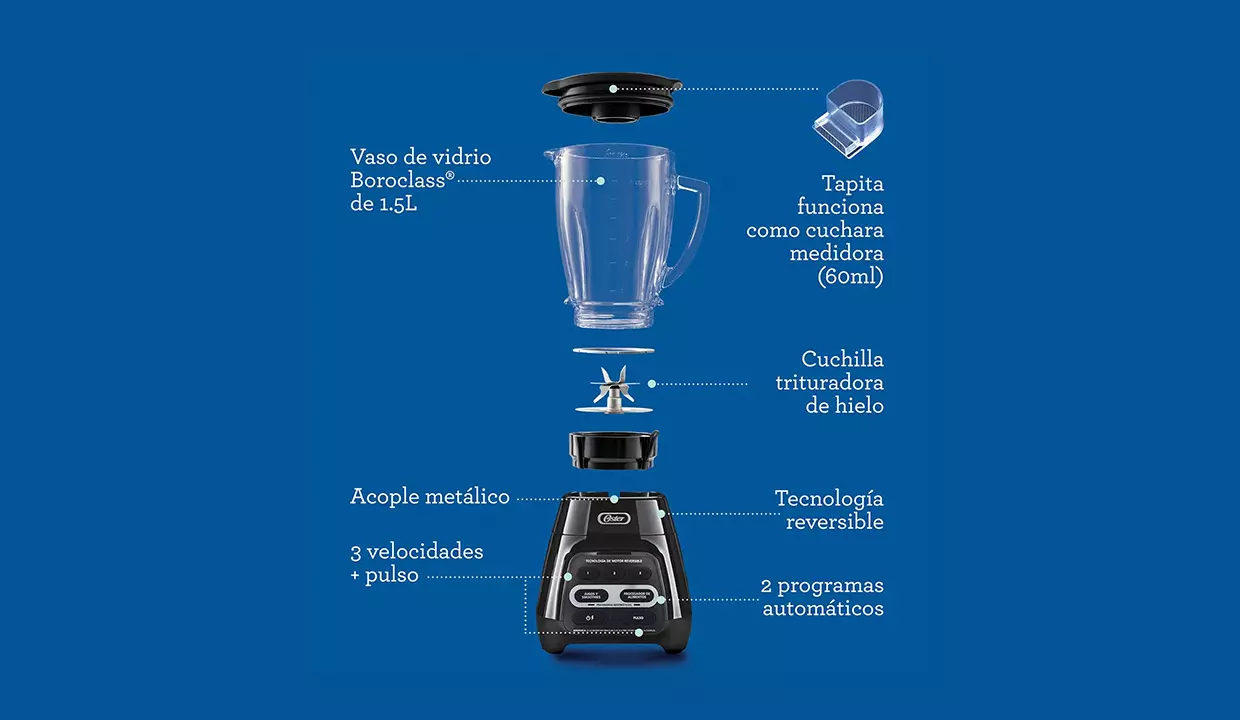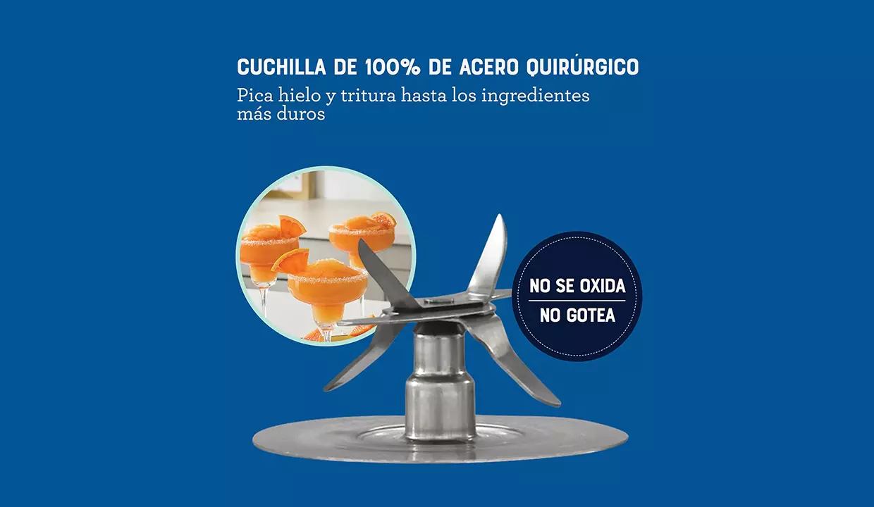 Su posición y su diseño mantienen los ingredientes en continuo movimiento, para que no queden en el fondo de la jarra y se mezclen bien | |