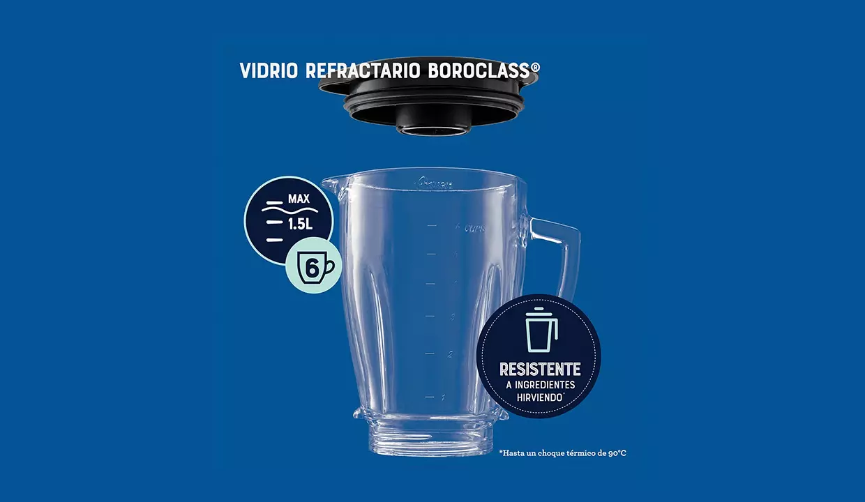El vaso de vidrio es resistente a ingredientes hirviendo (choque térmico de 90°) y soporta cambios bruscos de temperatura | |