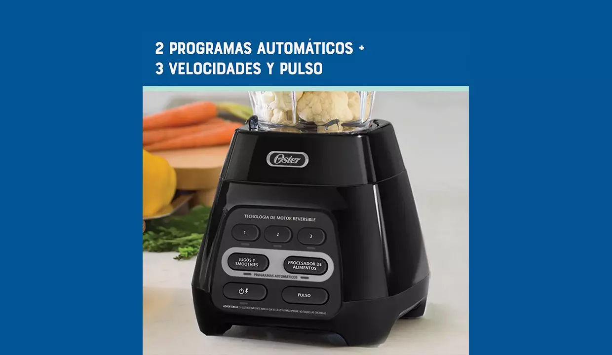 Cuenta con dos programas automáticos para jugos/smoothies y procesador de alimentos | |