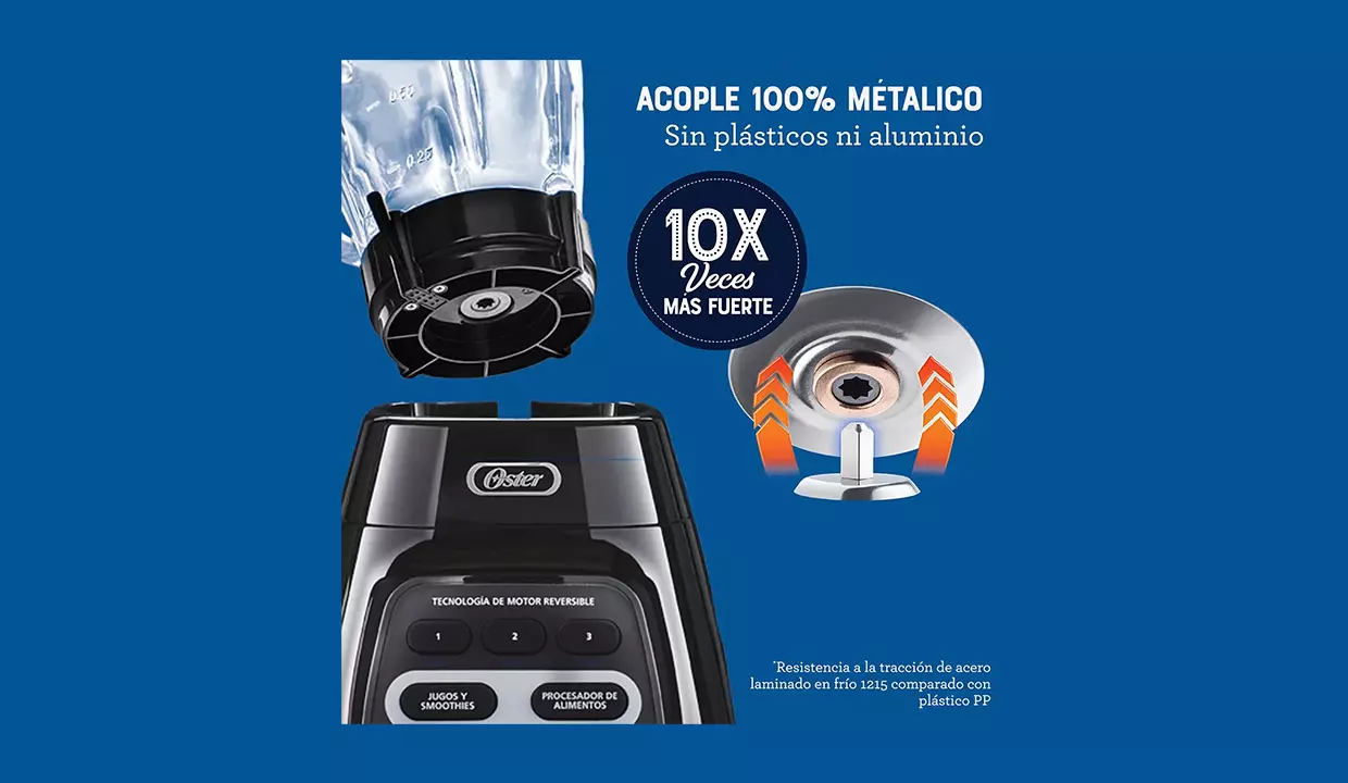 Tecnología de motor reversible y acople metálico 10 veces más fuerte que garantizan la consistencia perfecta en diferentes tipos de recetas | |