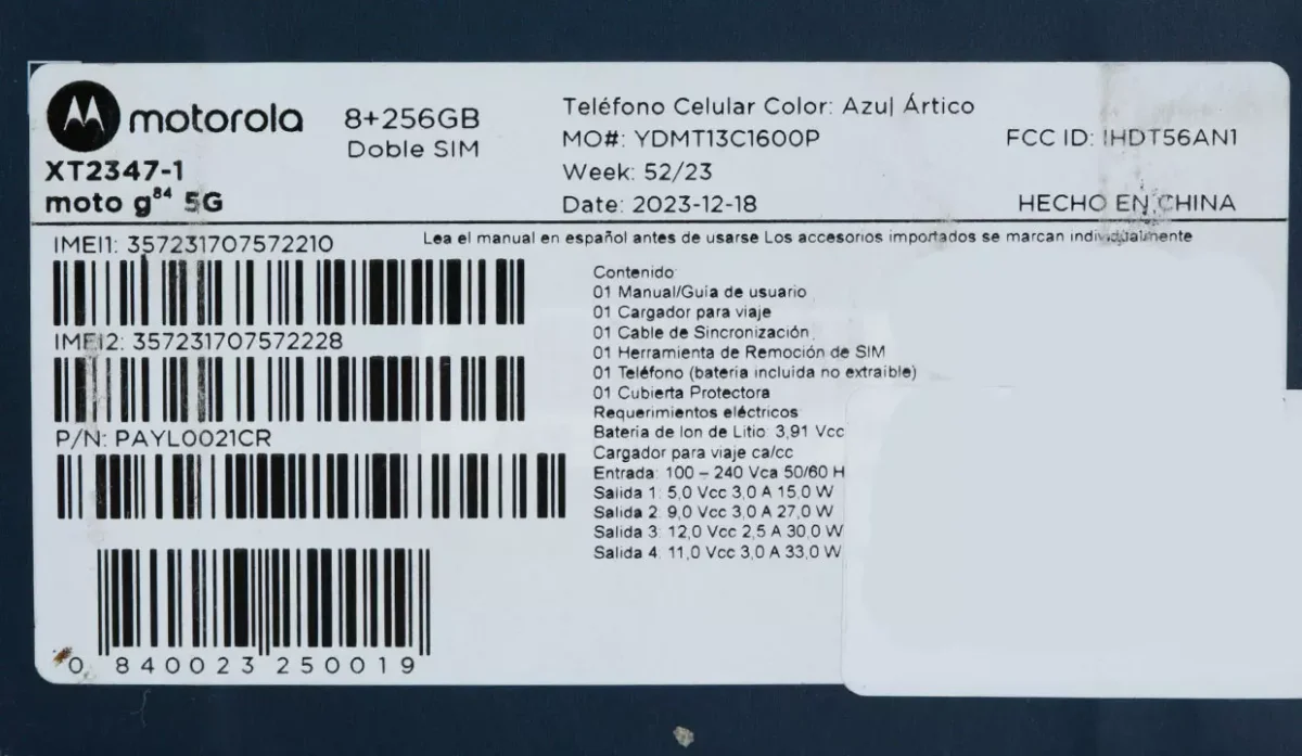 - Modelo: g84 5G.