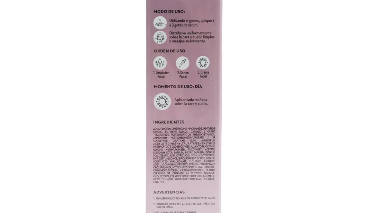 - Con vitamina C, reconocida vitamina que ayuda a unificar el tono de la piel para una tez radiante.