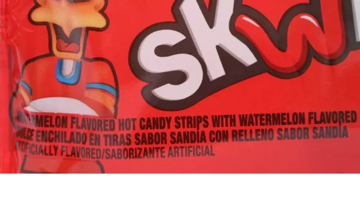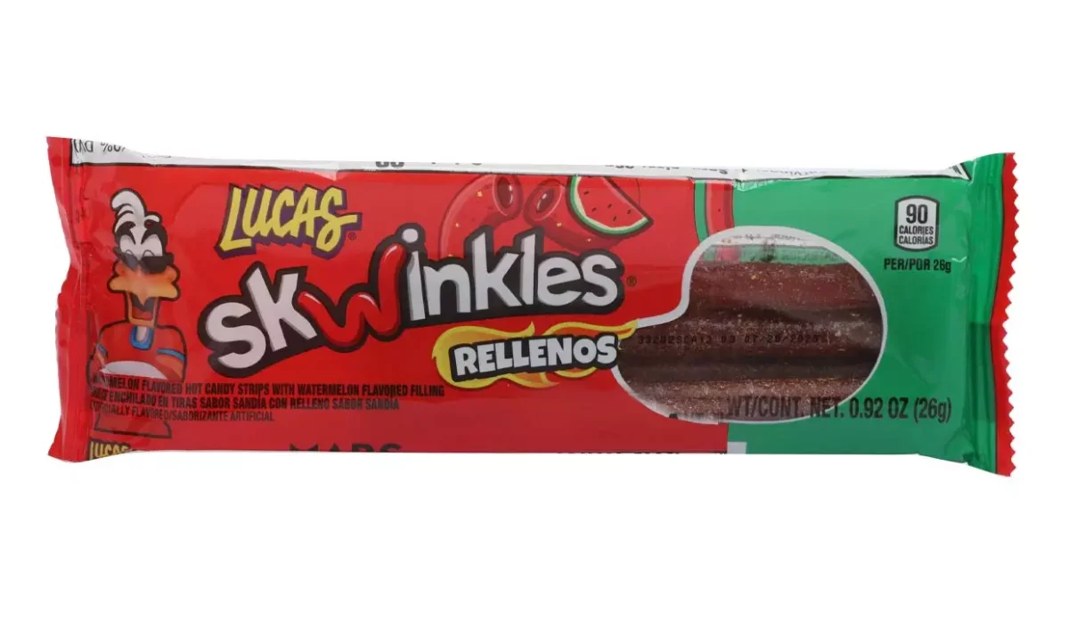 - Tiras de dulce, jarabe de maíz del alta fructosa, harina de trigo, jarabe de maíz, azúcar, dextrosa, jarabe de sorbitol, ácido cítrico, aceite de palma, chile en polvo, glicerina, sal yodada, fibra de trigo, aceite de soya, citrato de sodio, ácido láctico, lactato de sodio, ácido málico, mono y diglicéridos, benzoato de sodio y sorbato de potasio.