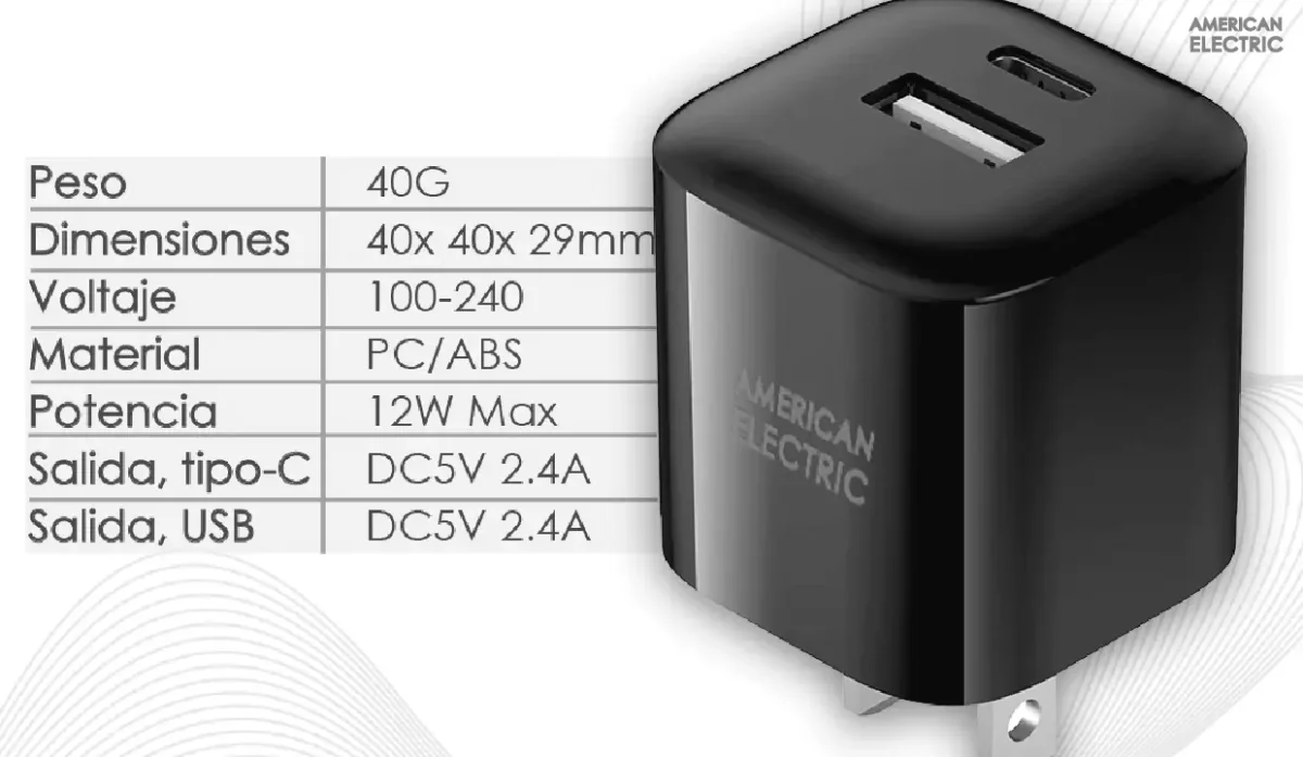 - Cargue dispositivos USB-C con velocidad de 12W.