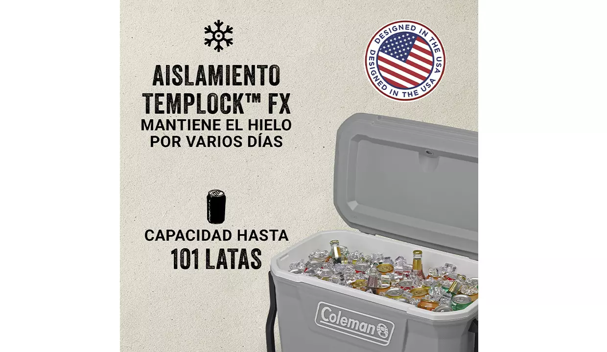 - Mantienen el hielo hasta por 6 días en temperaturas de hasta 90°F.