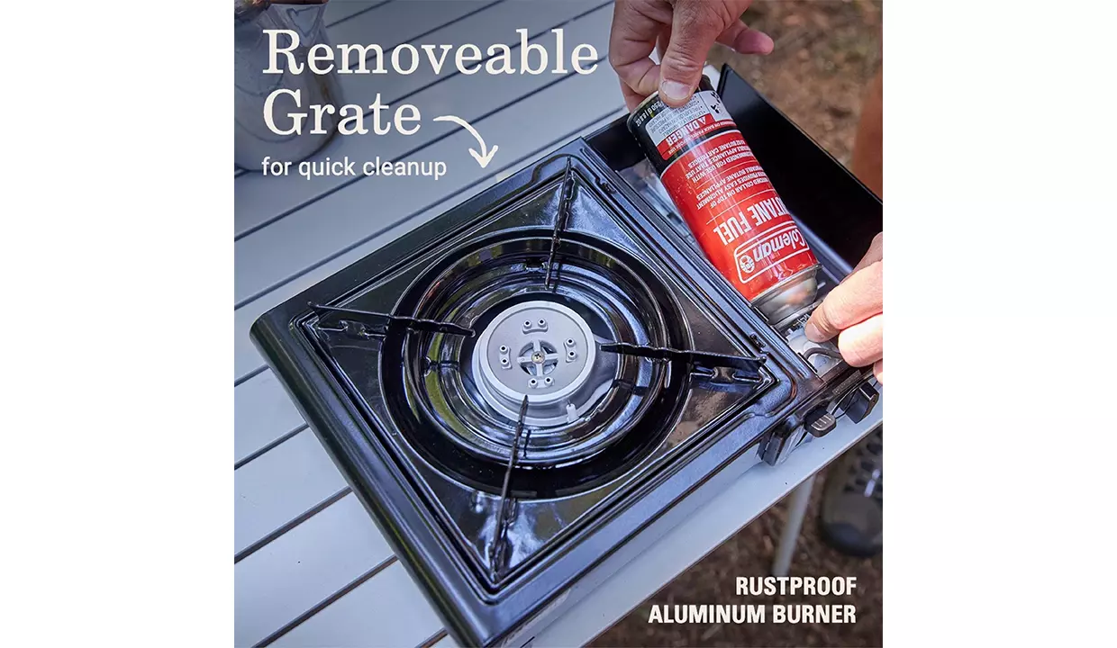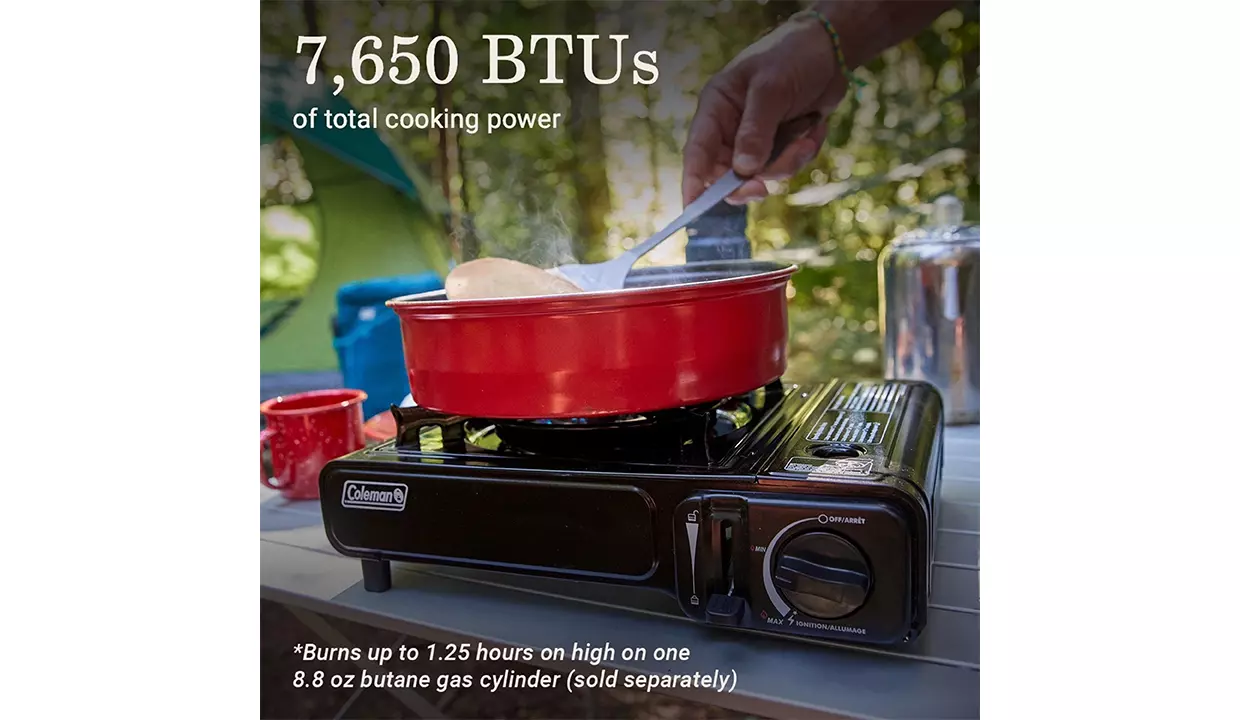 - Tiempo de combustión: hasta 1,25 horas en potencia alta con un cilindro de gas butano de 8,8 oz (no incluído).