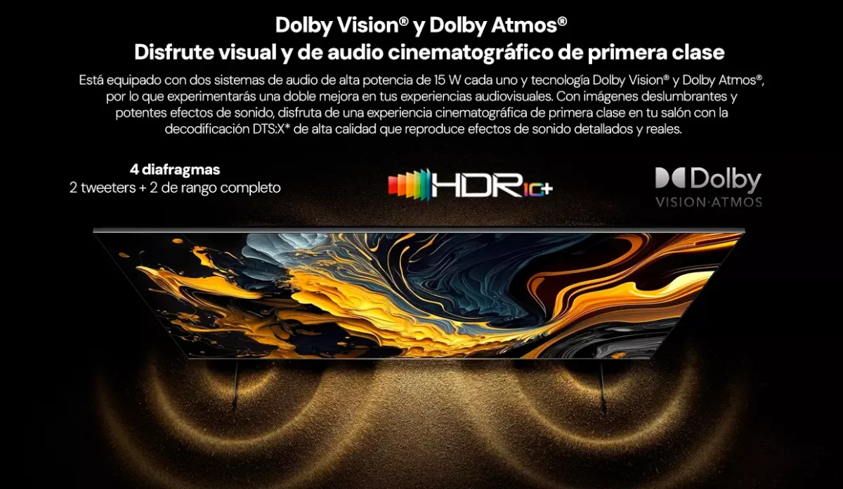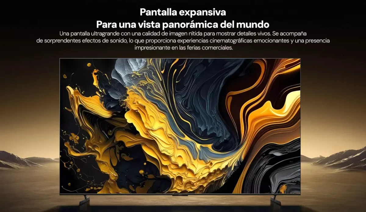 | Descripción: | Pantalla ultragrande 4K que maximiza tu visión con una claridad asombrosa; calidad de imagen nítida y sorprendentes efectos de sonido |
