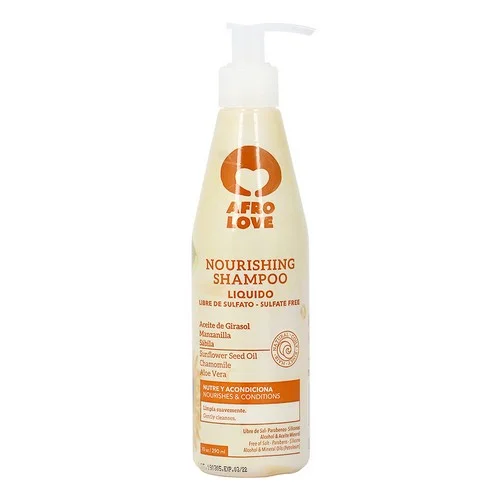 | Modo de uso: | Shampoo líquido libre de sulfato con: • Aceite de girasol: hidrata y aporta brillo • Manzanilla: alivia el cuero cabelludo • Sábila: reduce el encrespamiento Nutre y acondiciona al mismo tiempo que limpia suavemente. Libre de sal. parabenos. siliconas y aceite mineral. 290 ml |
