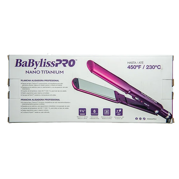 | Modo de uso: | PLANCHA PROFESIONAL NANO TITANIUM ANALOGA DEGRADE DE 1 ½" Placas de Nano Titanium para una mejor transferencia de temperatura. Hasta 450°F. Diseño cilíndrico para crear ondas Perilla para control con 6 niveles de temperatura. Placas NT de 1½" ideal para alisar y crear ondas más anchas en cabellos más largos y con volumen. Tecnología Nano Titanium la cual borra la memoria de los cabellos más gruesos y con volumen. Tablero análogo de perilla para un control de la temperatura más fácil. 450 grados de temperatura ideales para un alisado más rápido y en menos tiempo. Cable giratorio: para fácil manejo y evitar enredo. |